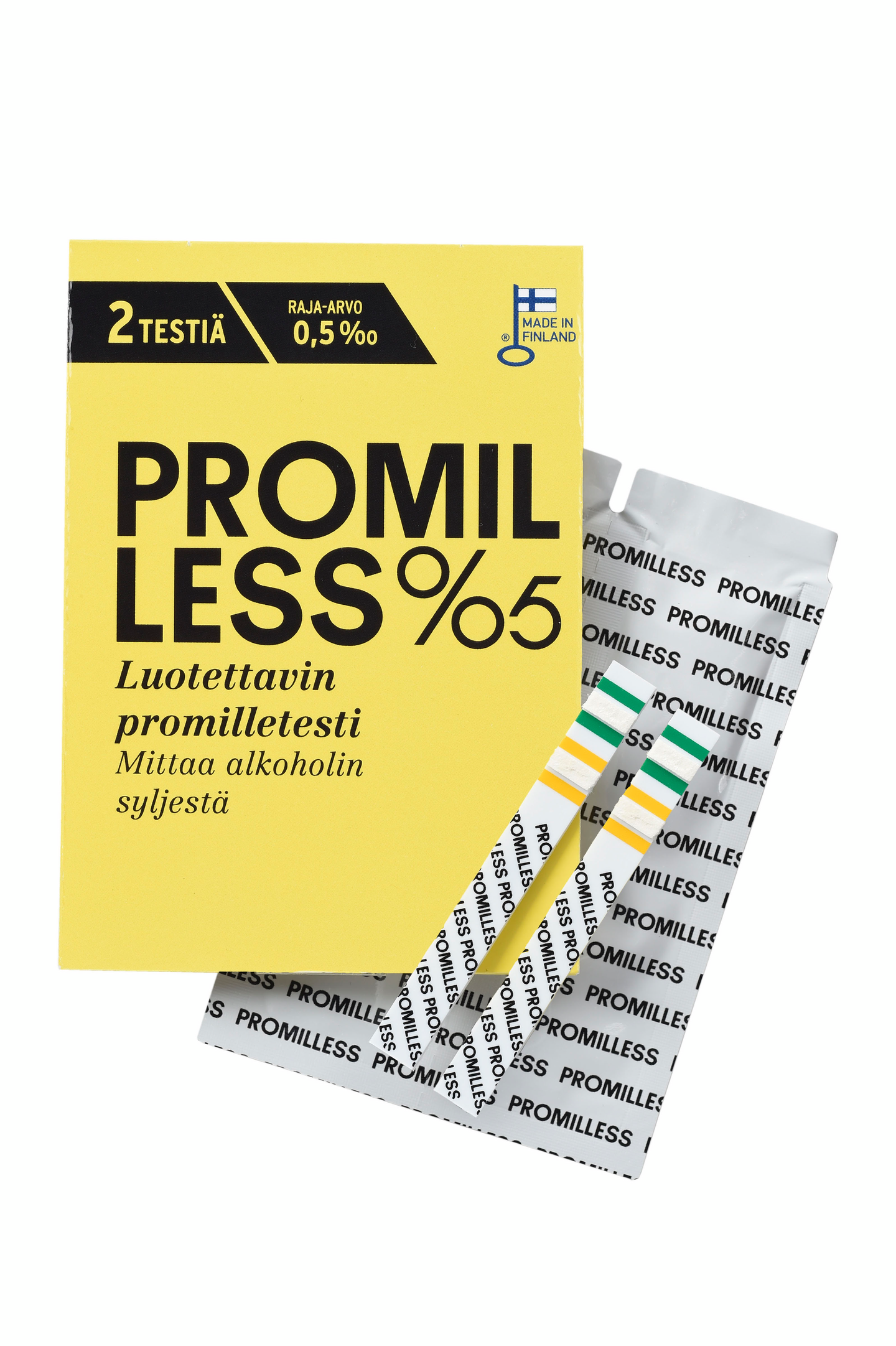 Promilless kertakäyttöinen alkoholitestiliuska on nopea ja helppokäyttöinen pikatesti, joka on tarkoitettu alkoholin havaitsemiseen ihmisen syljestä. Testi soveltuu veren alkoholipitoisuuden arviointiin, ja sitä voivat käyttää sekä kuluttajat, terveydenhuollon ammattilaiset, että viranomaiset. Testin tuottamaa tulosta voidaan käyttää tukena alkoholi-intoksikaation kliinisessä arvioinnissa, ja se tulee tarvittaessa varmentaa standardoidulla vertailumenetelmällä. Testi ilmaisee, jos käyttäjän veressä on yli 0,5 ‰ alkoholia. Oikein käytettynä testin tarkkuus on verrattavissa veritestiin. Patentoitu, CE-merkitty luokan 1 lääkinnällinen laite. Lisätietoja ja käyttöohjevideo www.promilless.fi