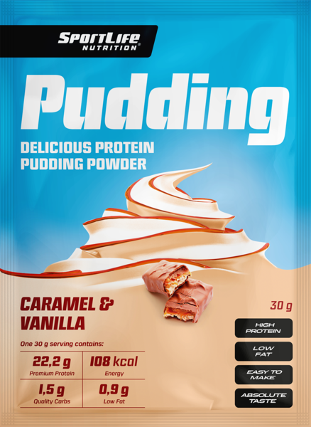 SportLife Nutrition® Pudding on samettisen pehmeä suussa sulava proteiinivanukas. Pudding sisältää runsaasti laadukasta proteiinia ja on vähäsokerinen. Pudding välipaloilla ja jälkiruuilla herkuttelet helposti lisää proteiinia päivittäiseen ruokavalioosi.