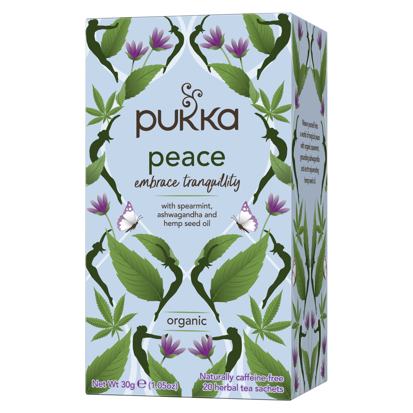 Tue mieltäsi ja kehoasi Pukka Peace -teen avulla! Yrtteistä, kamomillasta, laventelista, ashwagandhasta ja hampusta valmistettu Pukan rentouttava teesekoitus tukee luonnollisesti mieltä ja kehoa elämän paineiden keskellä. Yrttiasiantuntijoiden ja ravitsemusterapeuttien valitsemat yrtit rauhoittavat luonnollisesti ja tyynnyttävät mieltä. Jokainen kompostoitava teepussi on täynnä eteerisiä öljyjä ja korkealaatuisia yrttejä, jotka on hankittu erityisesti niiden rauhoittavien ominaisuuksien vuoksi.