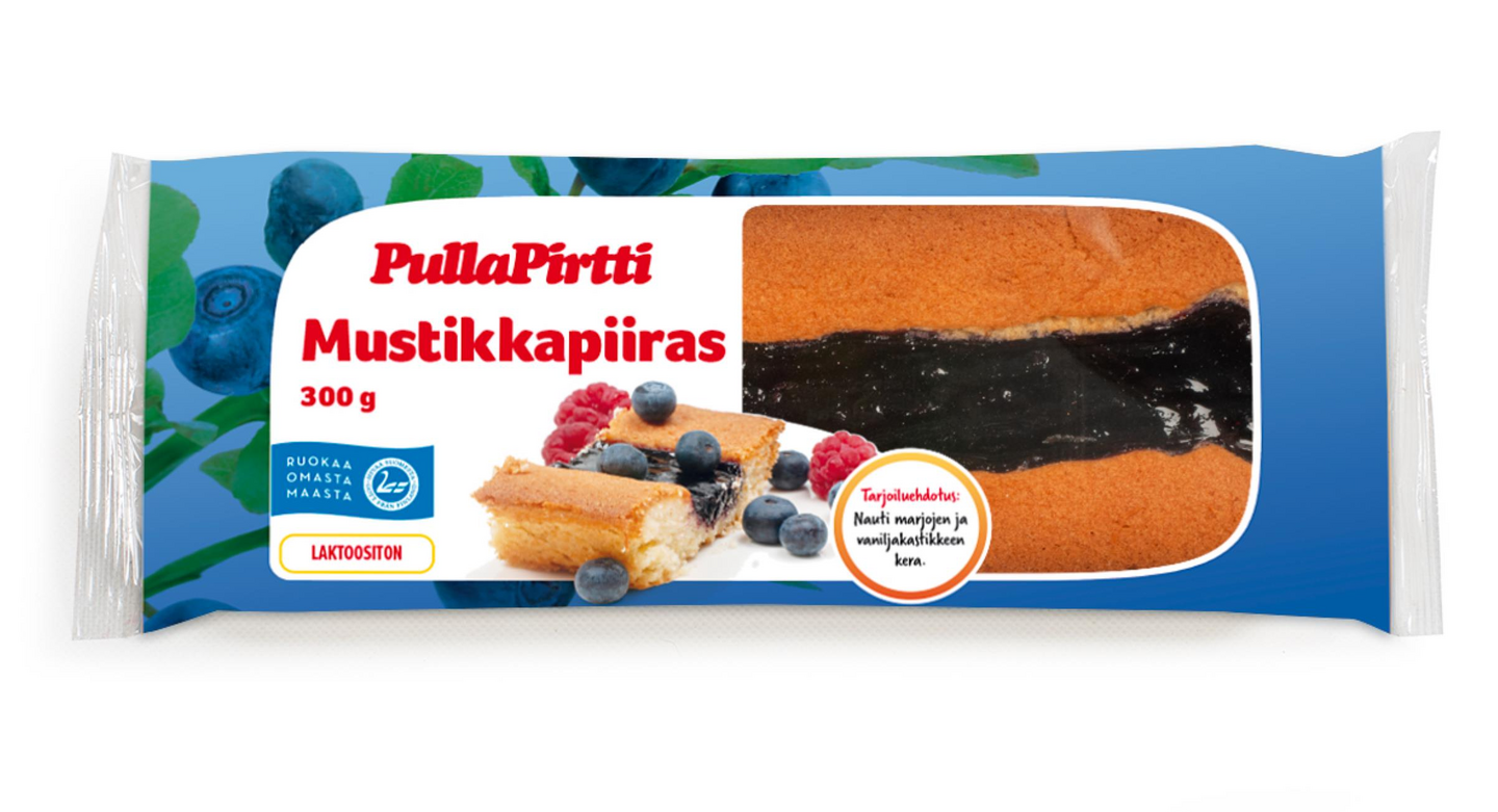 Vuoassa paistettu rahkapohjainen mustikkatäytepiiras.