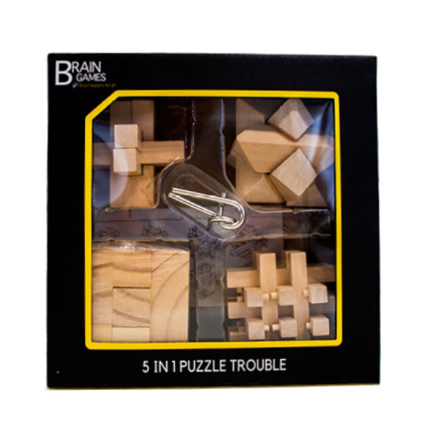 Brain Games laittaa levottomat sormet liikkeelle ja aivot solmuun kehittäen samalla havainnointi- ja keskittymiskykyä. Pulmapelisetin viiden visaisen pelin parissa vierähtää tovi jos toinenkin. Valmistettu puusta ja metallista.