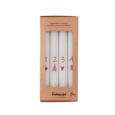 Kruunukynttilöissä on adventtinumerot, joten adventtisunnuntaisin voit rauhoittua ja tunnelmoida joulua näiden kynttilöiden ääressä.