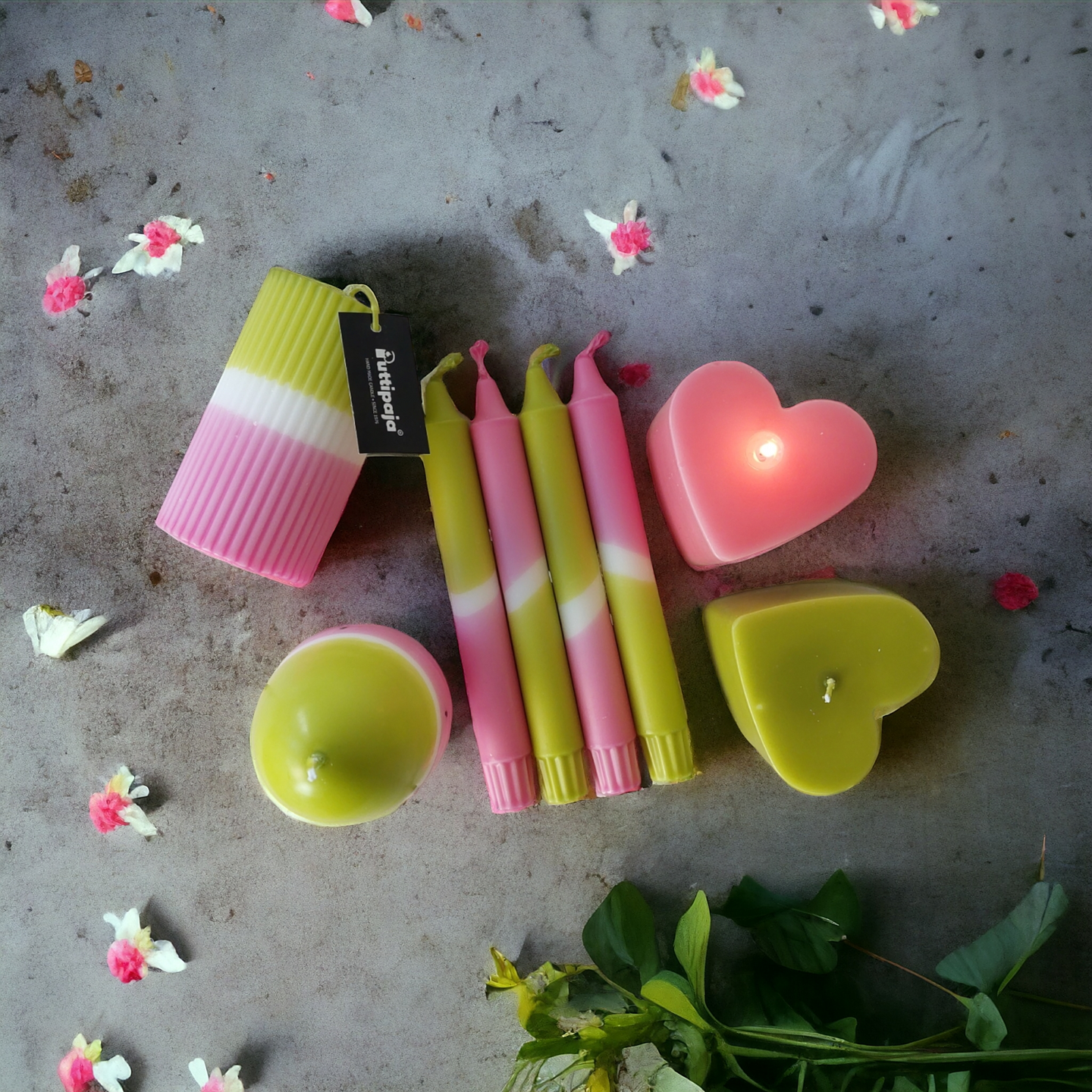 Raidalliset vekkikynttilämme valmistetaan käsityönä Dip dye -menetelmällä, joten jokainen kynttilä on upeasti uniikki.