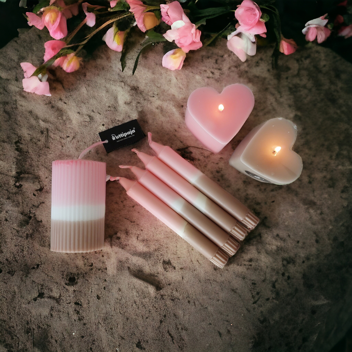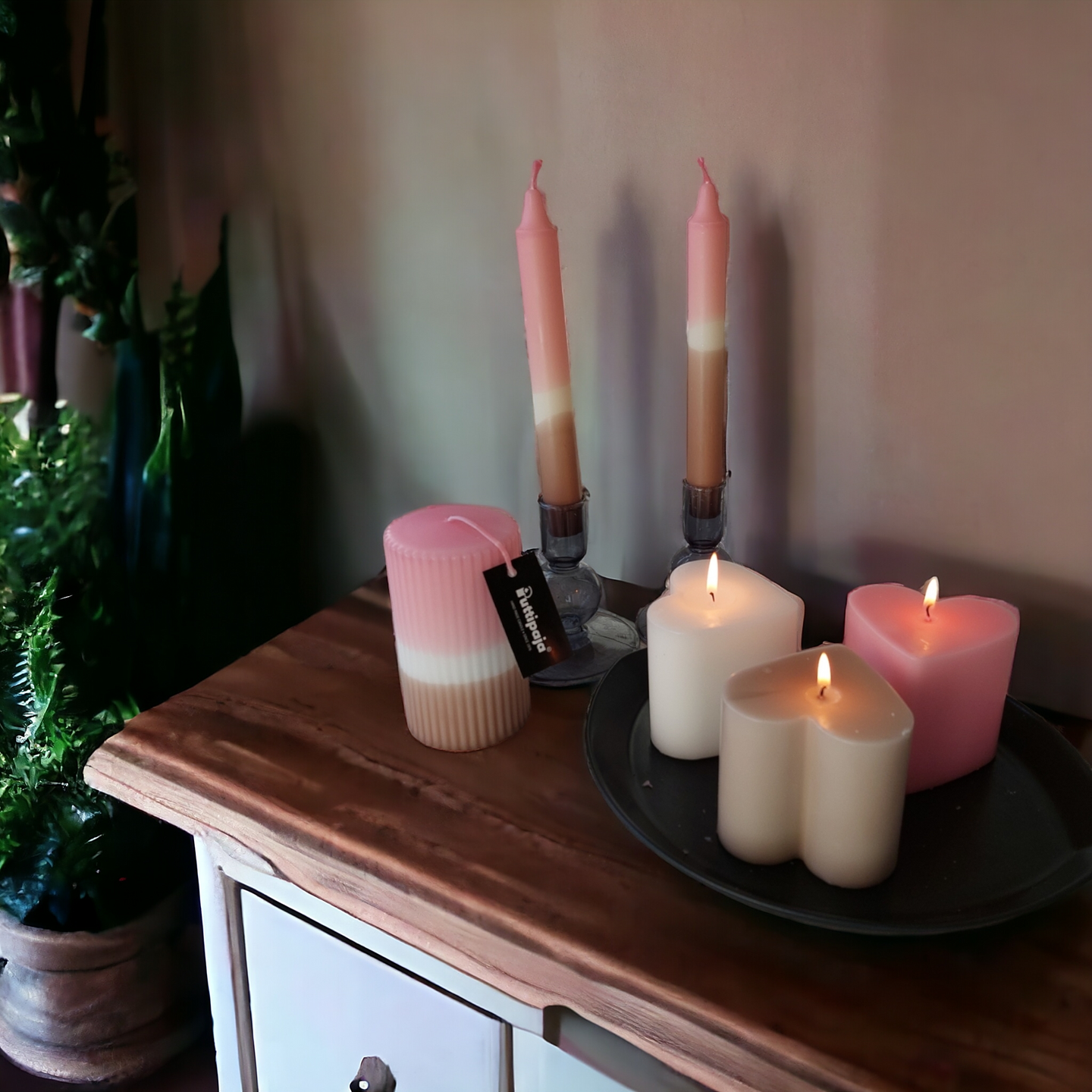 Raidalliset vekkikynttilämme valmistetaan käsityönä Dip dye -menetelmällä, joten jokainen kynttilä on upeasti uniikki.