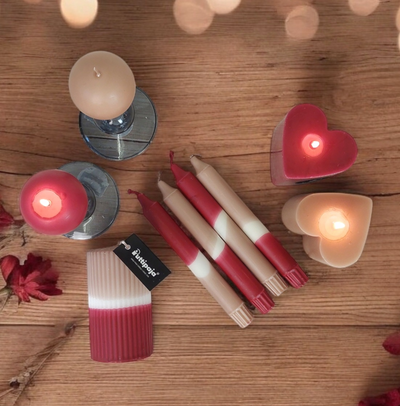 Raidalliset vekkikynttilämme valmistetaan käsityönä Dip dye -menetelmällä, joten jokainen kynttilä on upeasti uniikki.