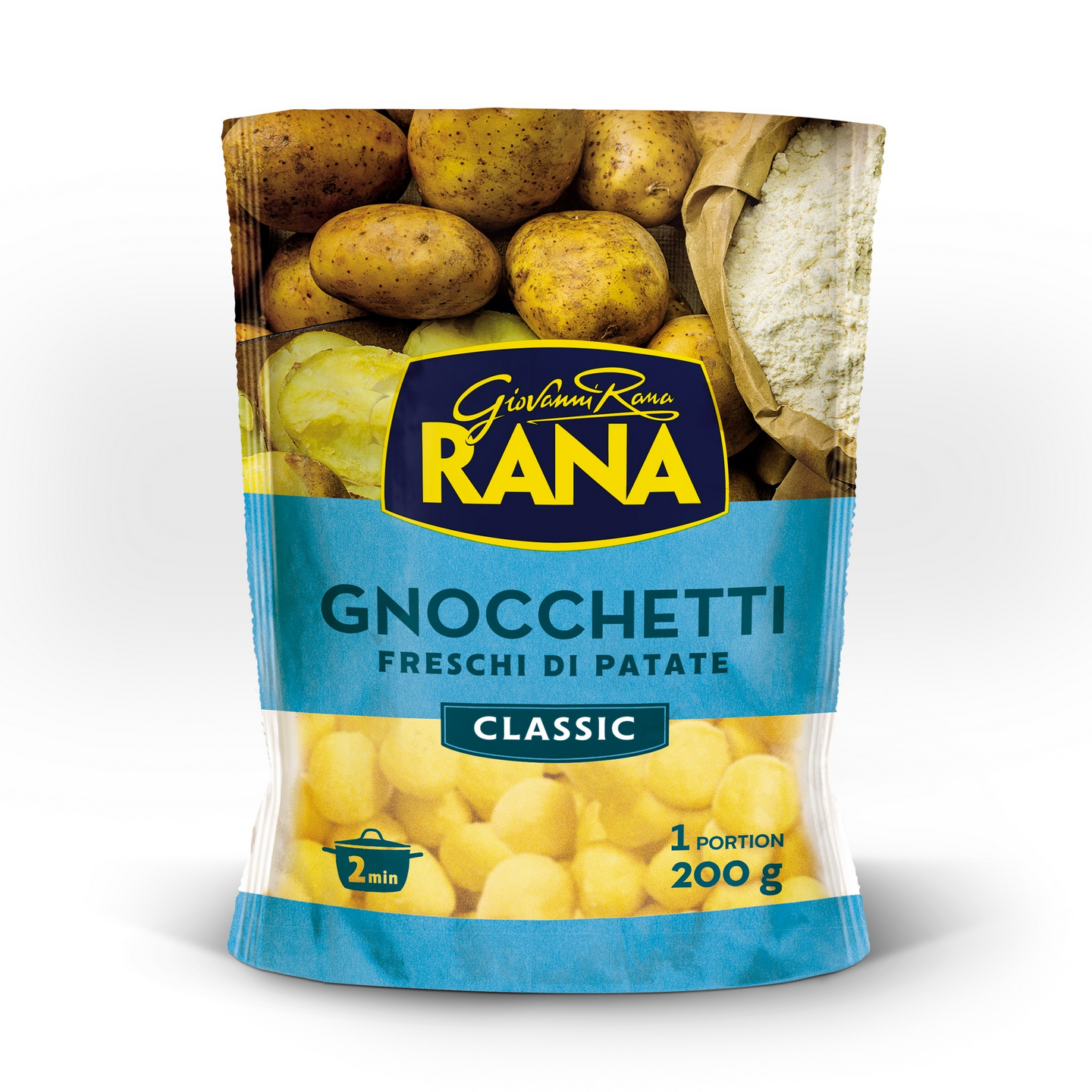 Gnocchettit ovat pieniä gnoccheja, durumvehnäjauhosta ja perunasta valmistettuja herkullisia ja pehmeitä mykyjä. Perunagnocchit ovat italialaisen keittiön klassikko ja niitä käytetään pastan tavoin. Näissä italialaisen Giovanni Ranan herkullisissa pikkugnoccheissa on pehmeä sydän ja samettinen perunan maku ja ne sopivat myös kasvissyöjille. Ne eivät sisällä palmuöljyä tai glutamaattia. 1 hengen annos. Keittoaika 1 minuutti. Säilytys jääkaapissa – avattu tuote käytettävä 1 vuorokauden kuluessa.