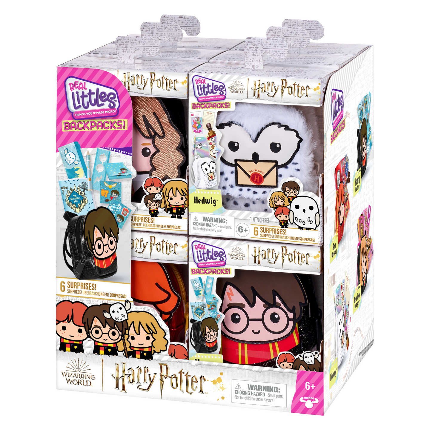 - Neljä teemakohtaista reppua, joissa on eri hahmoja Harry Potter -universumista.