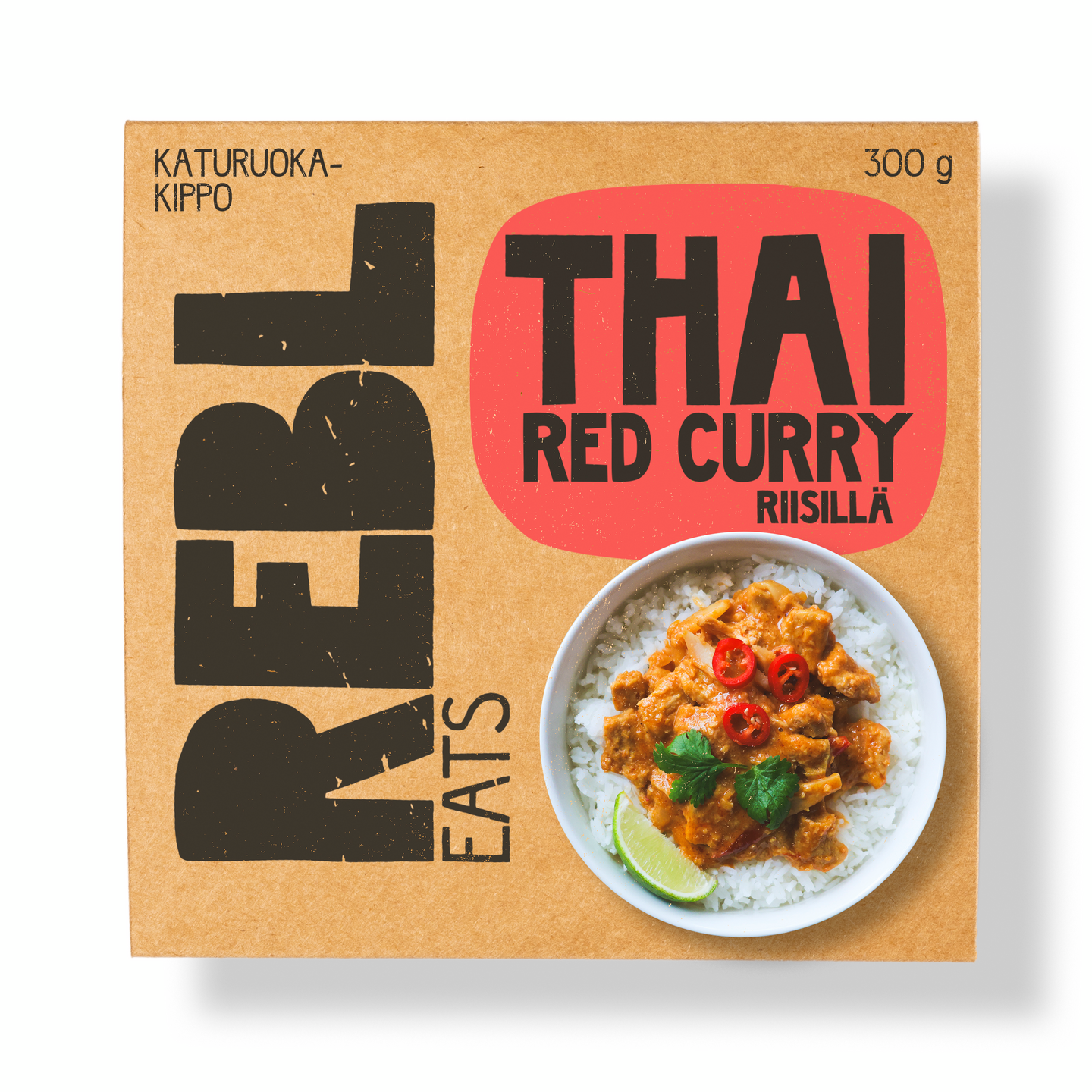 Tulinen thaimaalainen punainen curry bambunversoilla, punaisilla paprikoilla ja kookoskermalla.