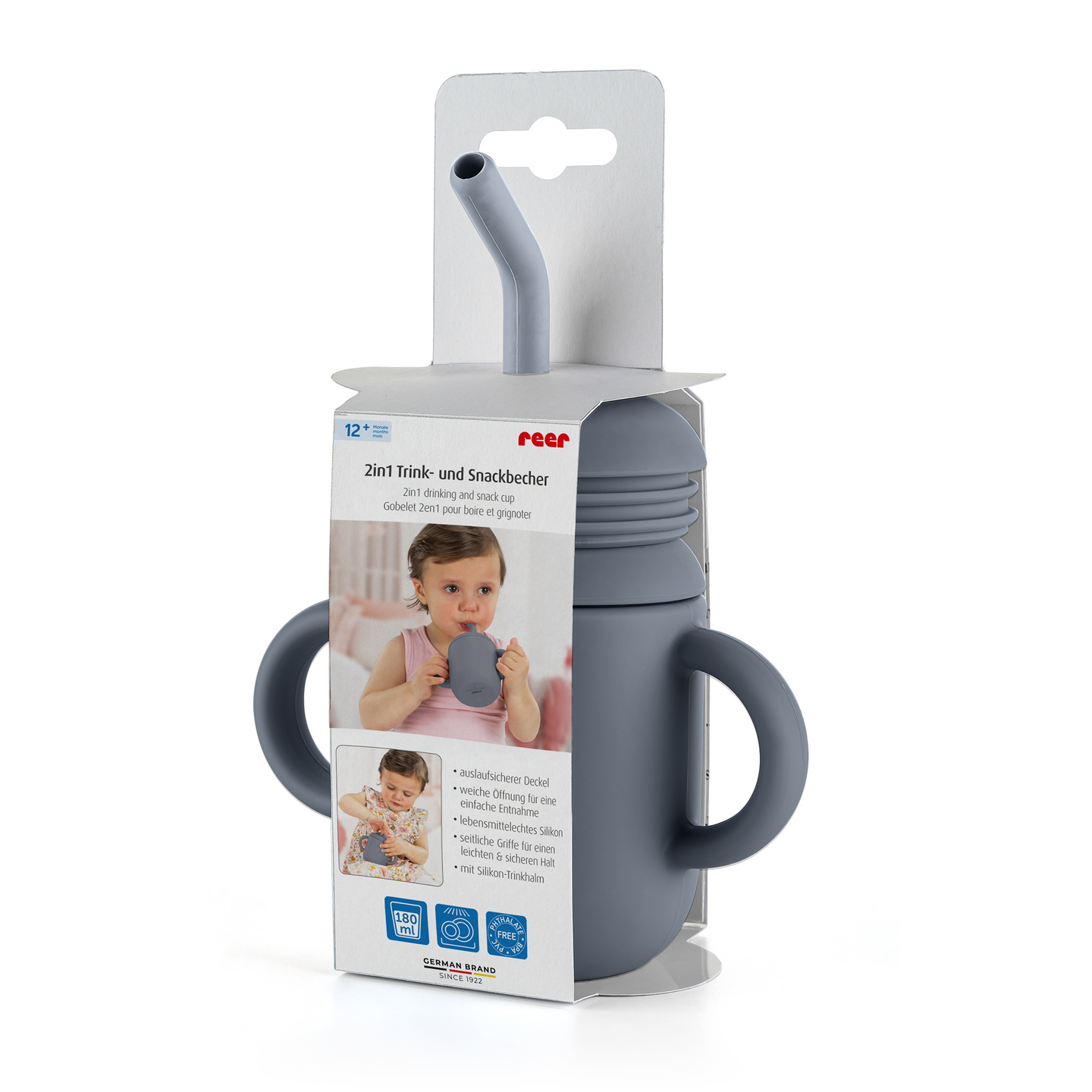 Reer 2-in-1 juoma- ja välipalamuki siniharmaa 180ml