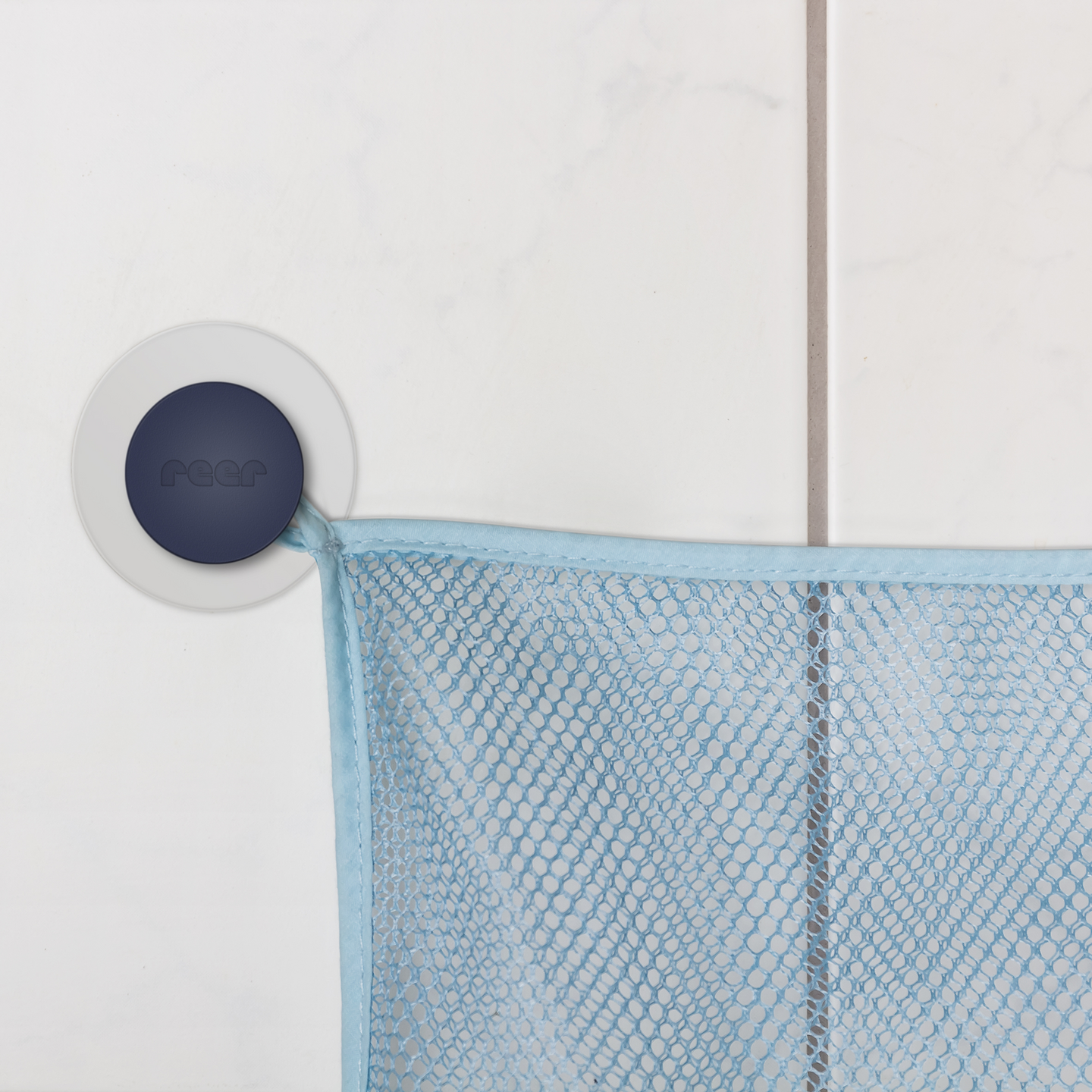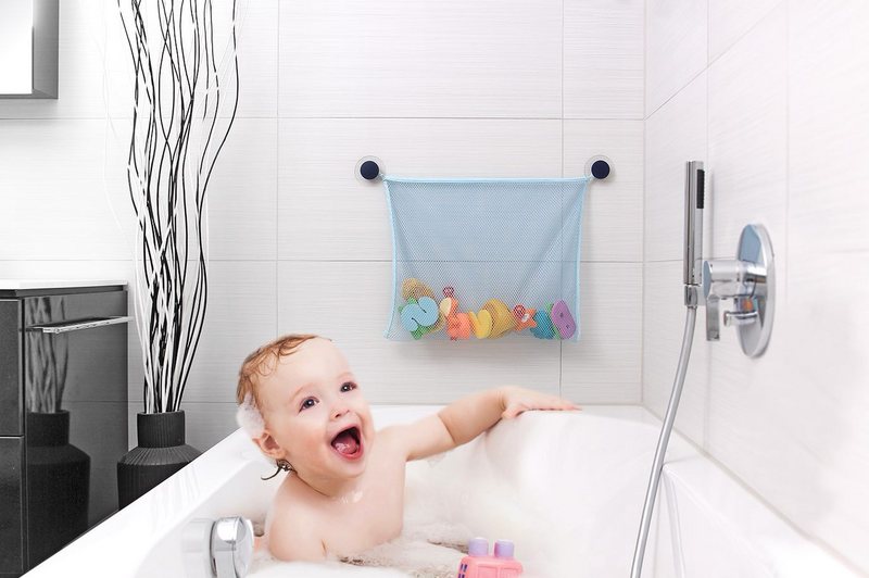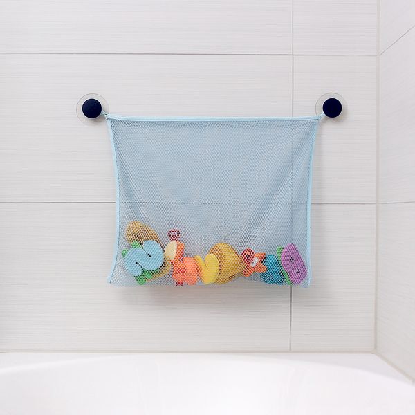 Käytännöllinen säilytysverkko pitää kylpylelut järjestyksessä ja antaa niiden kuivua hyvin. Verkko on helppo kiinnittää kaakeliin, saunanoveen tms. mukana tulevilla suurilla imukupeilla. Nopea kuivuminen estää homeen syntymistä.