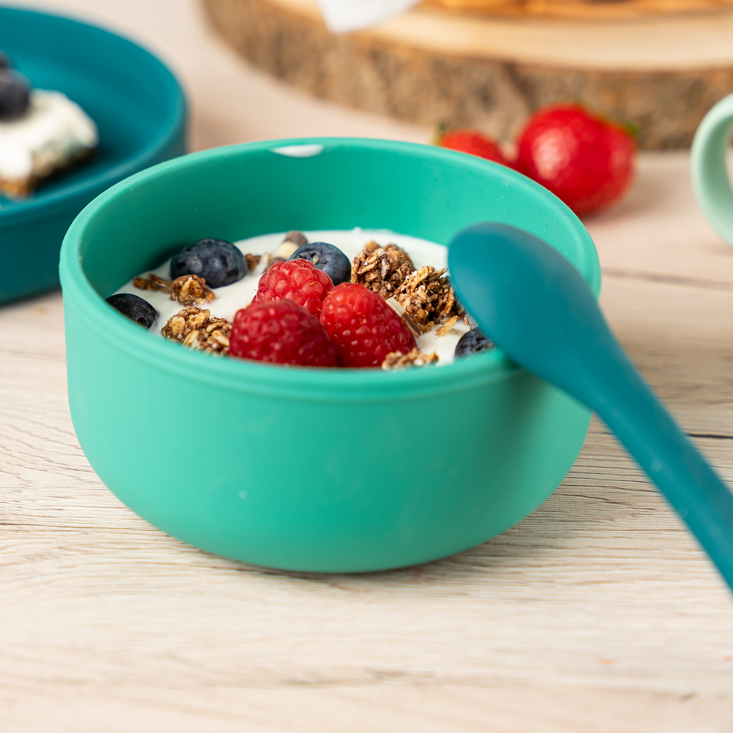 Reer silikoniastiasto on 4-osainen setti pienille ruokailijoille. Settiin kuuluu lautanen, kulho, muki ja lusikka. Astiasto on valmistettu joustavasta ja laadukkaasta elintarvikesilikonista, joka on BPA-, PVC- ja ftalaattivapaa. Lapsen ihoa ja hampaita hellivä materiaali sopii erinomaisesti myös pienimmille ruokailijoille. Mukissa on käytännöllinen kahva pienille käsille, ja lusikka on muotoiltu ergonomisesti opetteluvaiheeseen. Astiat sopivat sekä kiinteän ruoan että puuron tai välipalojen tarjoiluun. Astiat on helppo puhdistaa astianpesukoneessa ja ne kestävät lämmitystä mikrossa - helppoa arkea!