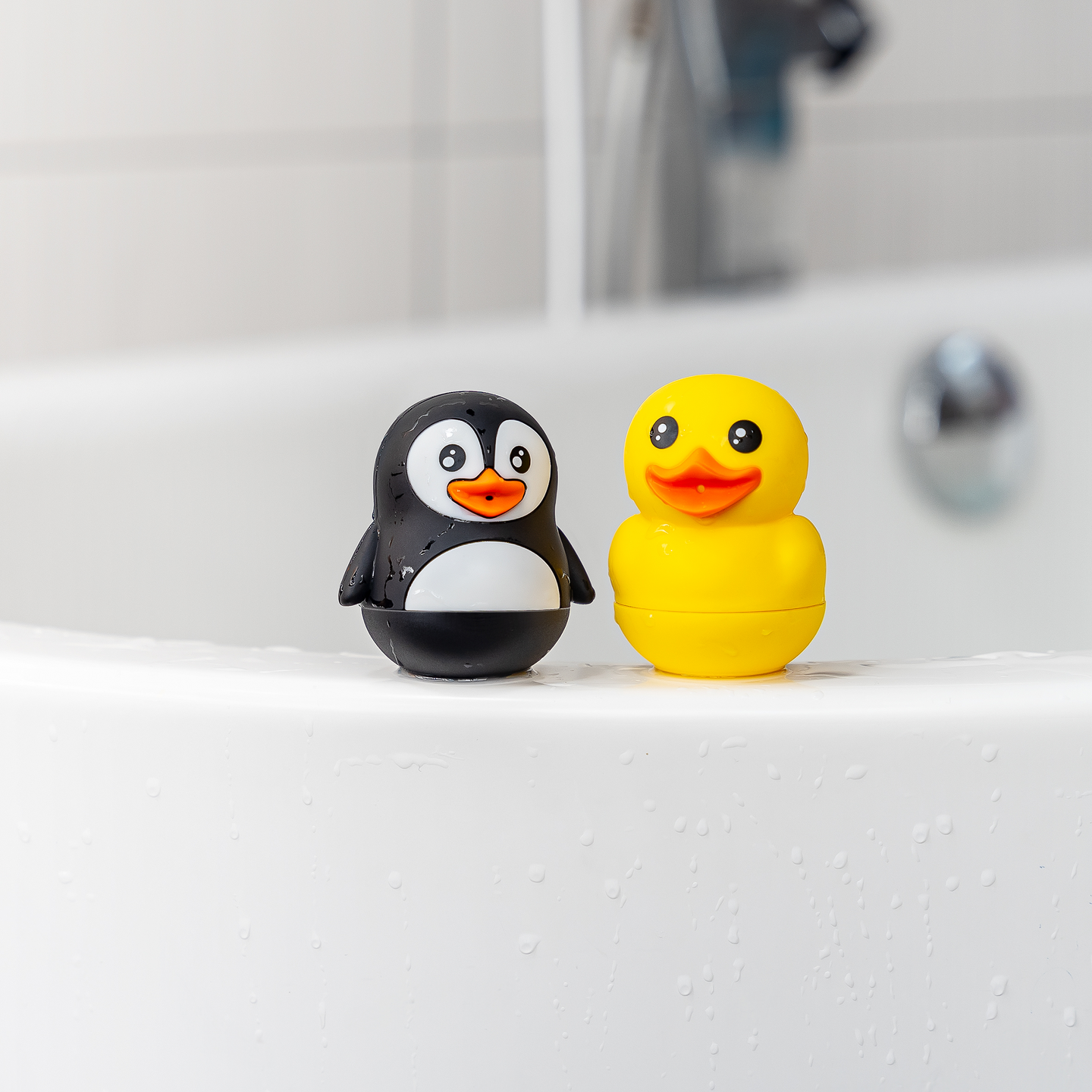 Ankka ja pingviini ovat ihanteellisia veden roiskutteluun ja hauskoihin kylpyleikkeihin. Ne on valmistettu kestävästä ja pehmeästä silikonista, joka tuntuu miellyttävältä käsissä ja kestää pitkään. Lelujen erityinen suihkutoiminto mahdollistaa veden ruiskuttamisen joko nokasta tai lelun pohjasta. Tämä tuo kylpyhetkiin pientä jännitystä ja monipuolista tekemistä. Helppokäyttöisyyttä ajatellen lelut voidaan purkaa osiin. Tämä ominaisuus tekee niiden pesemisestä vaivatonta ja kuivumisesta nopeaa, mikä auttaa ylläpitämään lelujen puhtauden ja hygienian. Kahden kappaleen paketti sisältää klassisen keltaisen ankan ja leikkisän pingviinin, jotka innostavat lapsia luoviin vesileikkeihin. Näiden lelujen avulla kylpyhetkistä tulee hauskoja ja turvallisia, ja vanhemmat voivat luottaa tuotteiden laatuun.