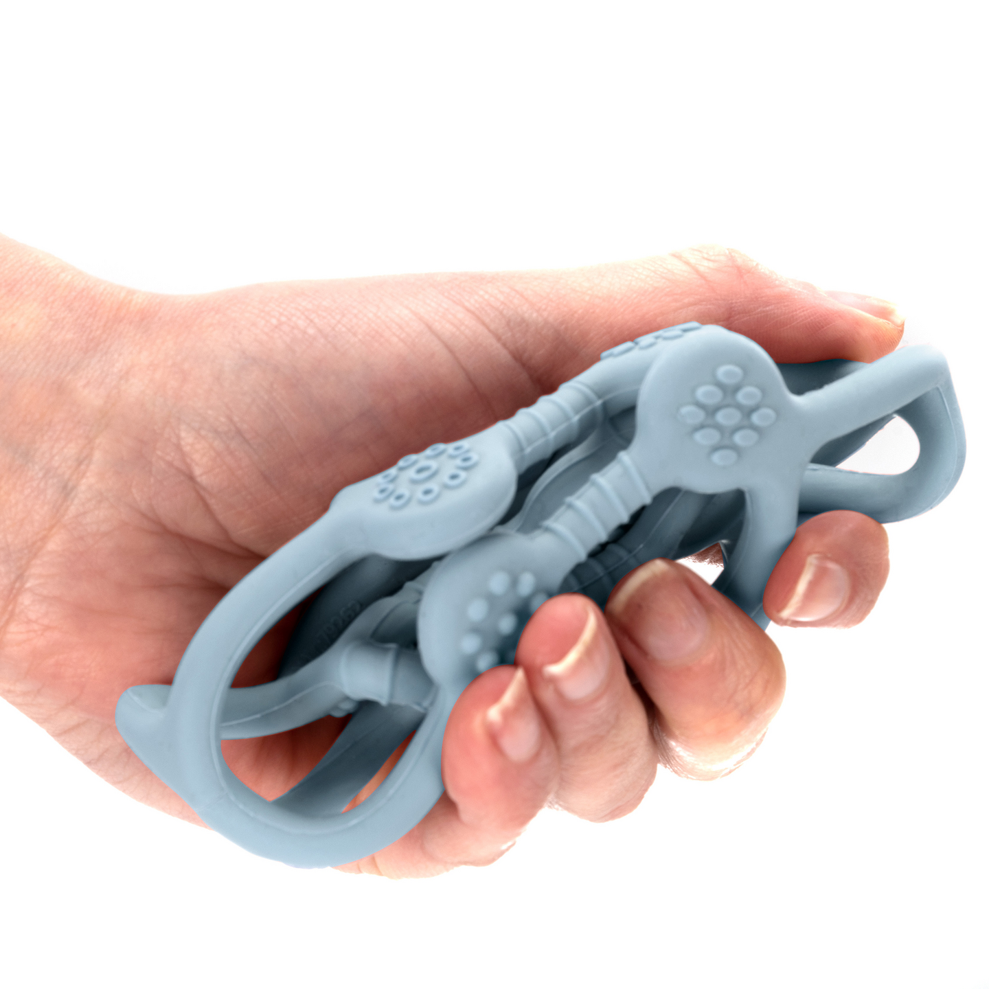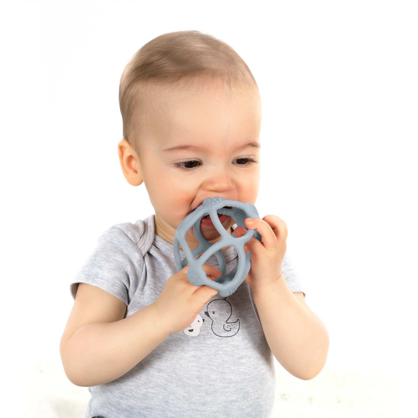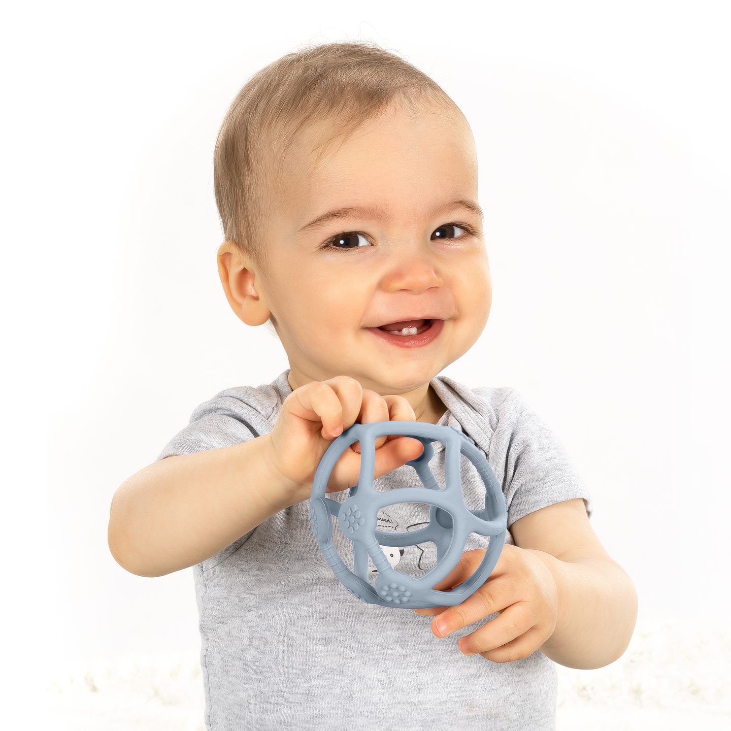 Vauvan paras kaveri Reer Bite&Play puru- ja tartuntapallo tarjoaa monipuolista iloa ja helpotusta pienimmillekin lapsille. Kevyt ja joustava pallo toimii erinomaisena puruleluna, lievittäen hampaiden puhkeamisen aiheuttamaa kipua ja tarjoten hauskaa ajanvietettä. Tämä 2-in-1 pallo edistää lapsen motoristen taitojen kehitystä ja tarjoaa samalla leikkisää häiriötä kivulta. Kehittää hienomotoriikkaa Reer Bite&Play tartuntapallo on suunniteltu tukemaan varhaista kehitystä. Suuret reiät ja kevyt rakenne mahdollistavat pienimpienkin lasten helpon tarttumisen, heittämisen ja pitämisen. Tämä auttaa parantamaan motorisia taitoja, käden ja silmän koordinaatiota sekä tarttumisrefleksiä. Erilaiset hierontaelementit stimuloivat vauvan tuntoaistia leikkisällä tavalla. Lempeää helpotusta hampaiden puhkeamiseen Pehmeä pureskelu hieroo ikeniä hellästi, lievittäen kipua. Puru- ja tartuntapallo tarjoaa lapsellesi täydellisen työkalun kivun lievittämiseen, tarjoten monipuolisia hierontaefektejä ja tuntemuksia suussa. Vahva ja joustava materiaali Bite&Play on valmistettu kestävästä silikonista, joka on 100% vapaa haitallisista aineista kuten BPA, PVC tai ftalaatit. Pehmeä ja joustava materiaali kestää puristamista, taivuttamista ja vääntämistä ilman, että se rikkoutuu. Samalla se on tarpeeksi vahva kestämään usein toistuvaa pureskelua ilman vahinkoa. Helppo puhdistaa Puru- ja tartuntapallo voidaan puhdistaa nopeasti ja helposti lämpimän juoksevan veden alla. Erityisen hygieenistä puhdistusta varten pallon voi myös steriloida keittämällä tai höyryttämällä. Tuotetiedot Reer Bite&Play puru- ja tartuntapallo tarjoaa erilaisia pintarakenteita, jotka tarjoavat pehmeää hierontaa ja helpotusta hampaiden puhkeamiseen. Helppo tarttua ja edistää hienomotorisia taitoja sekä leikki- ja tuntoaistia. Valmistettu silikonista ja voidaan sterilisoida höyryssä. Tuotteen ominaisuudet: - Monipuoliset pintarakenteet pehmeään hierontaan - Lievittää painetta ja auttaa hampaiden puhkeamisessa - Helppo tarttua - Edistää hienomotorisia taitoja sekä leikki- ja tuntoaistia - Materiaali: silikoni - Voidaan steriloida höyryssä