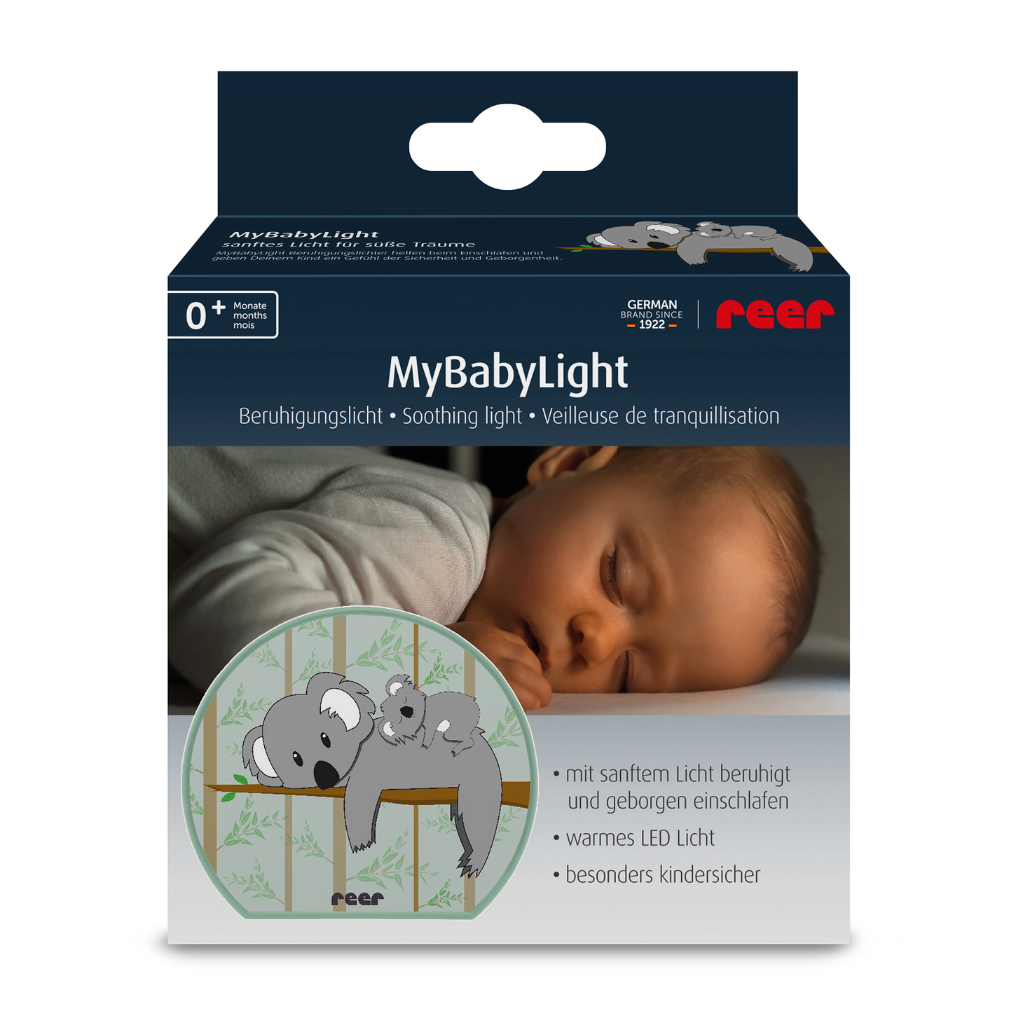 Reerin koala-yövalo – turvallista unta lapsellesi Tasapainoinen uni on erityisen tärkeää lasten kehitykselle, sillä uudet vaikutelmat käsitellään erityisesti yöllä. Pimeän pelko, yöllinen suunnan puute tai yksinäisyyden tunne voivat estää lasta nukahtamasta. Koalalampun suloiset kuviot saattelevat lapsesi terveelliseen uneen ja tarjoavat turvallisuuden ja mukavuuden tunteen yöllä. Turvallinen ja pehmeä valo rauhalliseen uneen Koala-yövalo luo ympärilleen kodikkaan ilmapiirin ja auttaa lastasi vaipumaan syvään ja huolettomaan uneen. Pehmeä valon hehku tarjoaa riittävästi valoa lapsesi hoitamiseen ilman, että tarvitsisit toista valonlähdettä. Näin pienokainen voi jatkaa nukkumista häiriintymättä. Suloiset iltakuviot kolmena eri versiona Suloinen koalakuvio hurmaa lapsesi kirkkailla väreillään. Yölampun taustavalaistu kuvionäyttö ei ole ainoastaan houkutteleva katseenvangitsija, vaan valaisee yöpöydän kodikkaasti ja innostaa uneksimaan. Helppo ja turvallinen LED-teknologia Paristokäyttöinen yövalo toimii ilman pistorasiaa ja sitä voi käyttää joustavasti missä tahansa. Paristokotelo on suojattu lapsen uteliaisuudelta ja tutkimushalulta ruuvin avulla. Modernin LED-teknologian ansiosta valo on energiatehokas ja turvallinen. Matala lämmöntuotto estää syttymisriskin jopa jatkuvassa käytössä. Lyhyesti - Koalan pehmeä valo luo rauhoittavan ilmapiirin nukahtamiseen. - Suloiset iltakuviot saattelevat lapsesi uneen. - Energiaa säästävä LED-teknologia ilman lämmöntuottoa. - Erityisen turvallinen särkymättömän materiaalin ja hätävalotoiminnon ansiosta. - Helppo käyttää. - Mitat: (LxKxS): noin 8,5 cm x 7,5 cm x 3 cm. - 2xAA-paristot (eivät sisälly pakkaukseen), 3V, 0.01A / 0.03W.