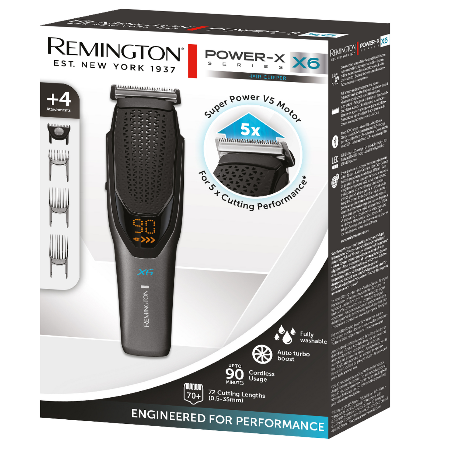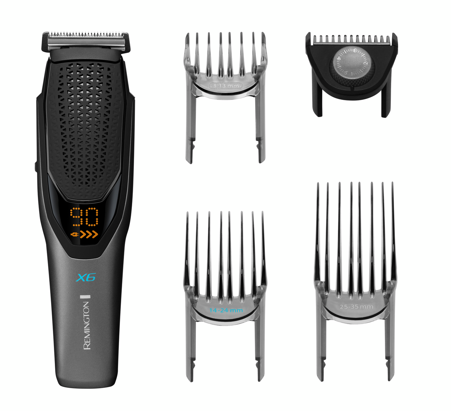 Remington HC6000-hiustenleikkuri on sinulle, joka etsit kotiparturoinnin mukavuutta ja ammattimaista lopputulosta samalla kertaa! 4 eri kampaosaa tekevät hiustenleikkaamisesta todella tarkkaa ja vaivatonta. Valittavana on 10 eri vaihtoehtoa 3 mm-13 mm, 14 mm - 24 mm ja 15 mm - 35 mm välillä.Power Series X6-hiustenleikkuri on ergonomisesti muotoiltu, ja sen anti-slip-pinnoite takaa, että leikkuri pysyy täydellisesti hallinnassa ja istuu hyvin käteen. Laite ei myöskään luista kädessä, vaan se pysyy myös kosteana tukevasti otteessa.Harmaa, musta ja turkoosi väritys antaa leikkurille trendikkään ilmeen.