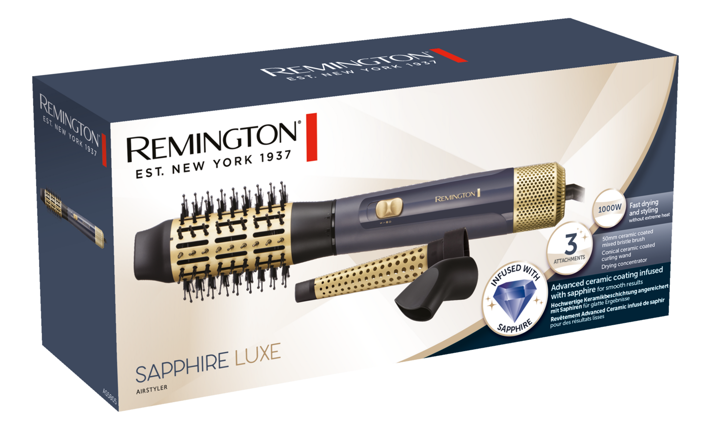 Sapphire Luxe-ilmakiharrin luo hiuksiin runsautta ja kimmoisuutta. Ilmakiharrin on oikea arjen pelastaja. Sillä korvaat pyöröharjan ja hiustenkuivaimen, mikä helpottaa ja nopeuttaa merkittävästi upean lopputuloksen saavuttamista – ja kätevästi vain yhdellä laitteella! Kihartimen keraamisessa pinnoitteessa on safiiria, joka tekee hiuksistasi silkkisen sileät. Ionisointi vähentää staattista sähköisyyttä ja lisää hiuksiin kiiltoa. Sapphire Luxe- ilmakihartimessa on yhdistettynä upeaa laivastonsinistä ja shampanjan värisiä yksityiskohtia.Irrotettava ja helposti puhdistettava takaritilä on suunniteltu pitämään ilmakihartimesi puhtaana pölystä ja hiuksista. Ruuvaa vain säleikkö irti, vedä sitä alaspäin ja pyyhi se kuivalla liinalla. Pyörivä johto helpottaa hiustenmuotoilua. Lämmönkestävä hansikas auttaa suojaamaan sormenpäitäsi kuumuudelta.