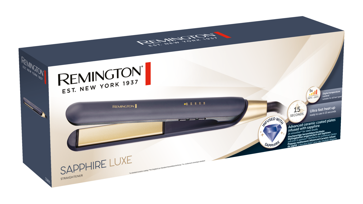 Upea Sapphire Luxe-suoristusrauta, jossa on yhdistettynä upeaa laivastonsinistä, ja shampanjan värisiä yksityiskohtia. Aitoa safiiria sisältävä keraaminen pinnoite takaa silkkisen sileät ja kiiltävät hiukset. Suoristusraudassa on viisi eri lämpötila-asetusta 150°C - 230°C väliltä, joista löytyy sopiva jokaiselle hiuslaadulle ja eri muotoilutarpeisiin. Kätevän Led-näytön ansioista lämpötilan näkee vain yhdellä silmäyksellä. Rauta lämpenee jo 15 sekunnissa, joten se on lähes heti valmiina käyttöä varten. Itsepäisiä hiuksia varten suoristusraudassa on Turbo Boost-toiminto, jolla voi lisätä lämpötilaa.