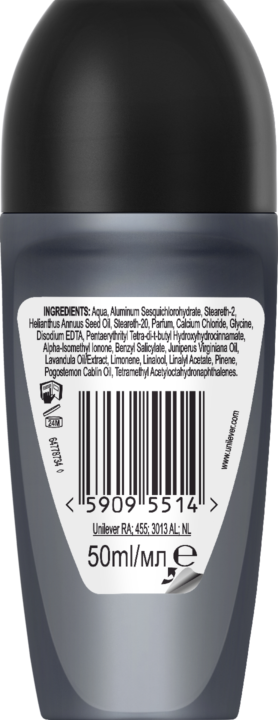 Kiitos Rexonan, sinä voit tuntea olosi varmaksi koko päivän. Rexona 48h Invisible Black & White antiperspirantti deodorantti roll-on on tehokas miesten roll-on antiperspirantti deodorantti, jossa on maskuliininen mutta raikas tuoksu. Se torjuu tehokkaasti valkoisia läikkiä mustissa vaatteissa ja keltaisia värjäytymiä vaaleissa vaatteissa. Rexona Men 48h Invisible Black & White antiperspirantti deodorantti roll-on levittyy vaivattomasti kainaloiden iholle ja kuivaa nopeasti. Alkoholiton deodoranttikoostumus auttaa vähentämään ihoärsytystä. Rexona Men 48h Invisible Black & White antiperspirantti deodorantti roll-onissa on mukana Rexonan ainutlaatuinen kehon liikkeisiin reagoiva MotionSense ™ -teknologia. Mitä enemmän liikut, sitä tehokkaammin se estää hikoilua ja torjuu epämiellyttäviä tuoksuja. Jopa kaksi vuorokautta kestävän suoja hikoilua ja pahaa hajua vastaan! Kävelymatka töihin sekä juhlat illemmalla. Asun valitseminen, joka sopii molempiin, on vaikeaa. Mutta antiperspirantin valitseminen ei ole, kun käytössäsi ovat Rexona naisten antiperspirantit. Tiesitkö, että yli 10 miljoonaa bakteeria elää kainaloissasi. Siksi saippua yksin ei riitä suojaamaan sinua pahoilta hajuilta. Kehomme epämiellyttävät hajut syntyvät iholla olevista bakteereista, jotka hajottavat hikeämme hapoiksi. Kainalomme ovat otollinen ympäristö bakteereille, siksi paras tapa estää hienhajua on puuttua sen syihin: bakteereihin. Rexonan suihkusaippuat, deodorantit ja antiperspirantit on suunniteltu aktiiviseen elämään. Rexonalla meidän tärkein tehtävämme on tietää kaikki hikoilusta. Se, mitä opimme, johtaa jatkuvasti uusiin tuoteinnovaatioihin. Joten riippumatta siitä, mitä teet elämässäsi – kiipeät vuorille, juokset bussille, pidät esityksen kollegoille tai menet treffeille – voit luottaa siihen, että Rexona antaa virkistävän lähdön päivään ja parhaan suojan hikoilua vastaan. Rexona on alan edelläkävijä. Antiperspiranttimme hienostuneet, piristävät tuoksut kestävät pitkään. Taattua raikkautta? Kyllä. Ja sinä voit keskittyä siihen mikä on sinulle tärkeintä, koska nyt sinulla on yksi asia vähemmän huolehdittavanasi.