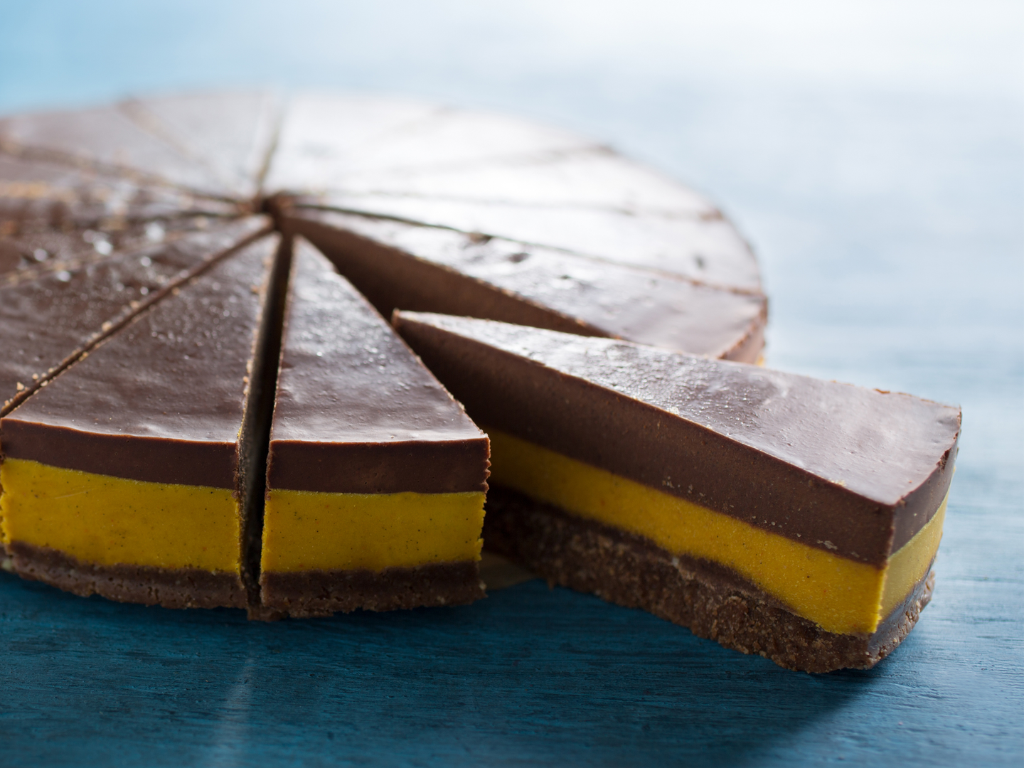 Suomessa käsintehty gluteeniton vegaaninen kakku parhaista raaka-aineista. Kaakaon maustama rapea pohja, päällä kerros appelsiini- inkiväärimoussea ja toinen kerros raakasuklaamoussea. Maku kuin upgreidattu”fatseriina”. Gluteeniton, maidoton, munaton, vegaanin en,rawfood. Ei sisällä valkoista sokeria.