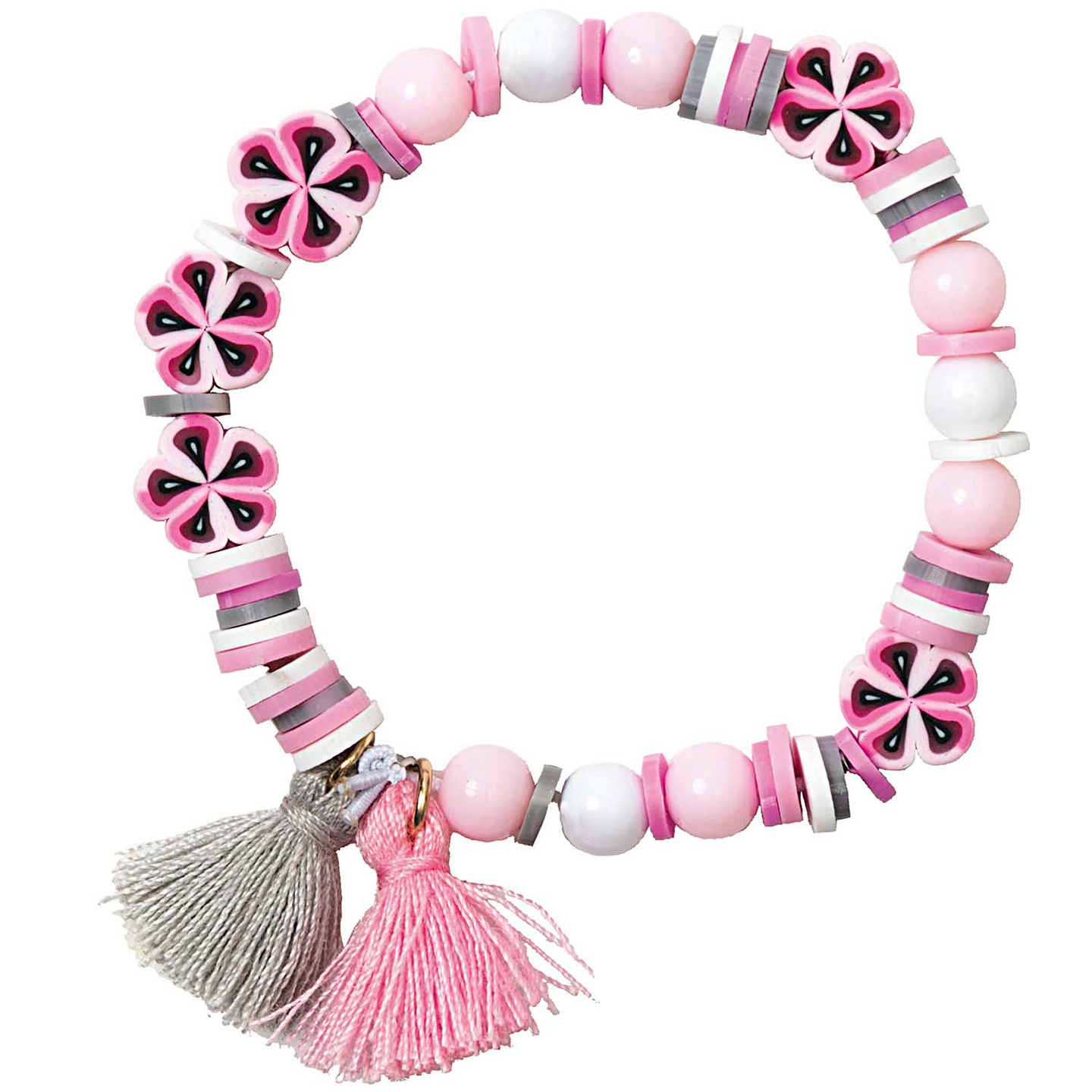 Suunnittele oma rannekorusi Jewellery Made by Me Mini Bead -rannekorusarjalla. Rannekoru sopii erinomaisesti niin lasten kuin aikuistenkin ranteisiin. Helmet ja tupsut on pujotetaan mukana tulevaan kuminauhaan, joten lisäkiinnitystä ei tarvita.