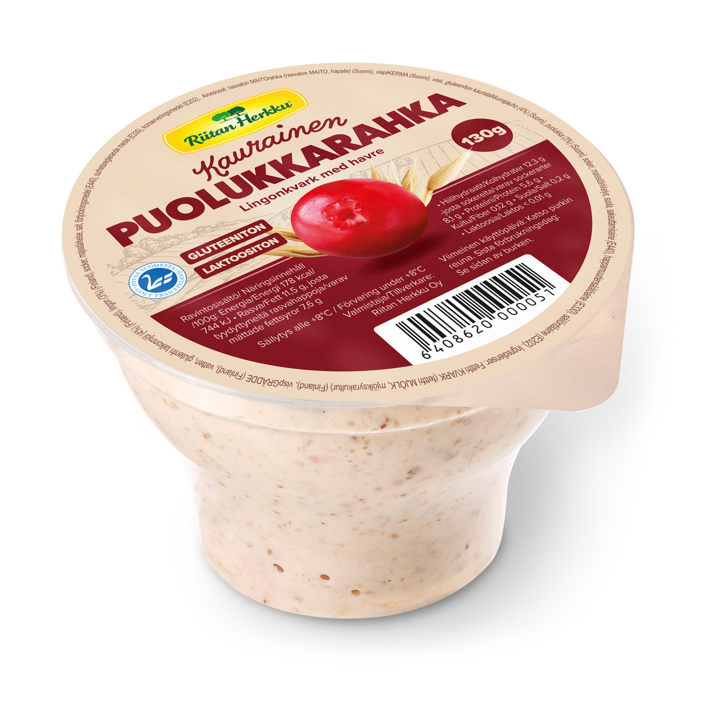Riitan Herkku puolukka kaurarahka 130g laktoositon