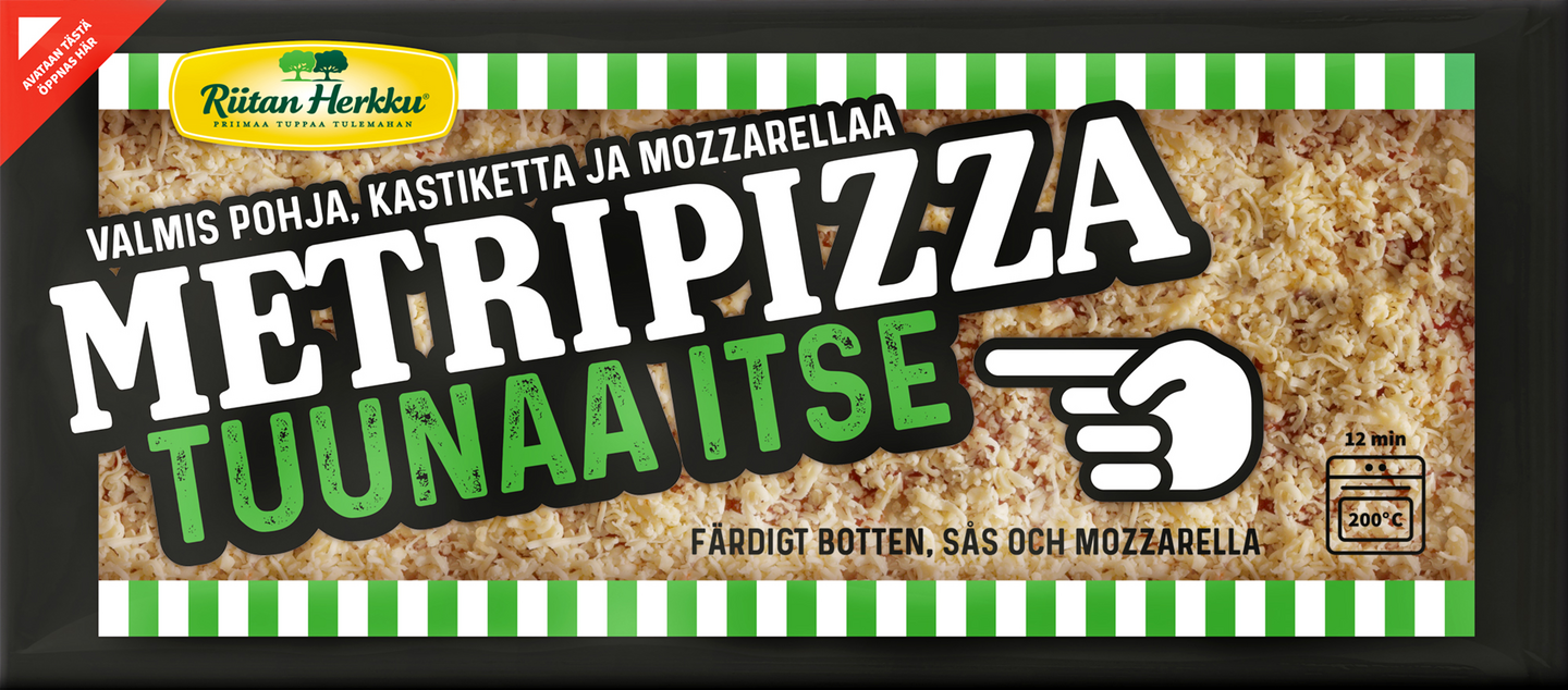 Pizzapohjan päällä tomaattikastike ja mozzarella-juustoa. Viimeistele pizza mieleisillä täytteillä ja nauti.