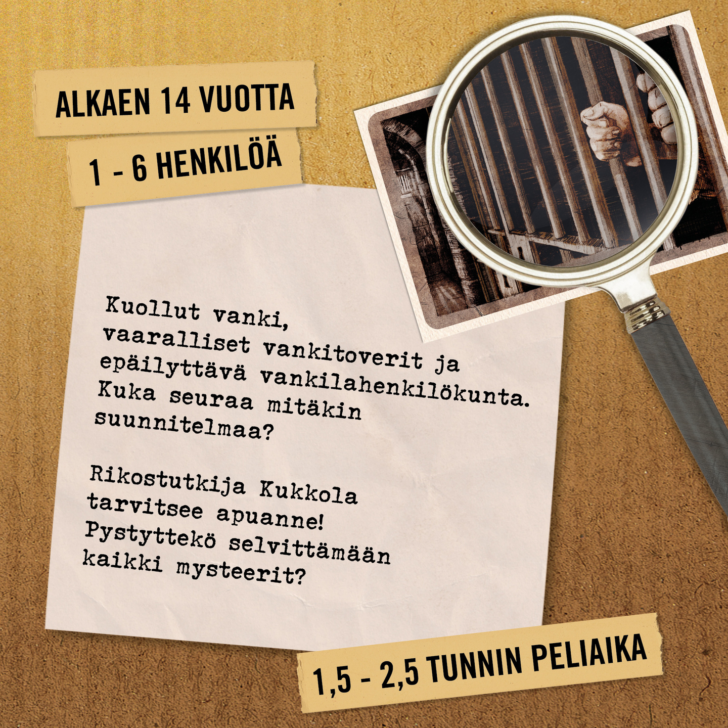 Rikospaikka on jännittävä interaktiivinen rikospeli, jossa pelaajat pyrkivät yhdessä selvittämään tapauksen. Luvassa epäilyttäviä vankeja ja salaisia suunnitelmia… Pelaamiseen vaaditaan internet-yhteys ja älypuhelin. 1-6 pelaajalle. Kieli: suomi. 14+