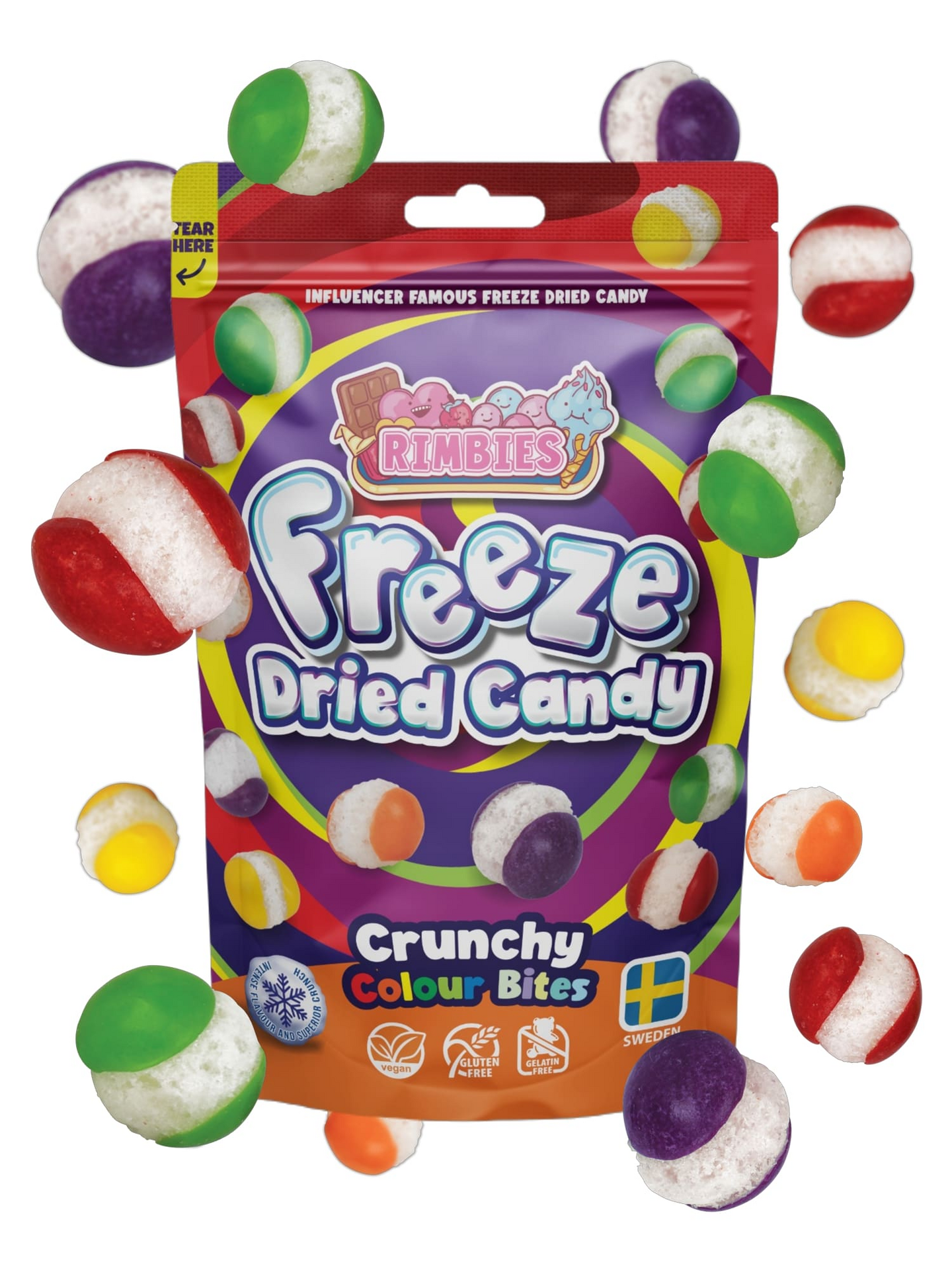 Valmistaudu hedelmäiseen makuelämykseen Crunchy Colour Bites -karkkien kanssa! Nämä värikkäät, pakastekuivatut herkut muuttavat suosikkimakusi – appelsiini, sitruuna, lime, mustaherukka ja mansikka – rapsakoiksi, ilmaviksi paloiksi, jotka sulavat suussasi. Pakastekuivausprosessi antaa jokaiselle palalle kevyen, rouskuvan koostumuksen, tuoden hauskan twistin klassiseen makuun. Täynnä makua ja väriä, jokainen puraisu on iloinen seikkailu makuhermoillesi.