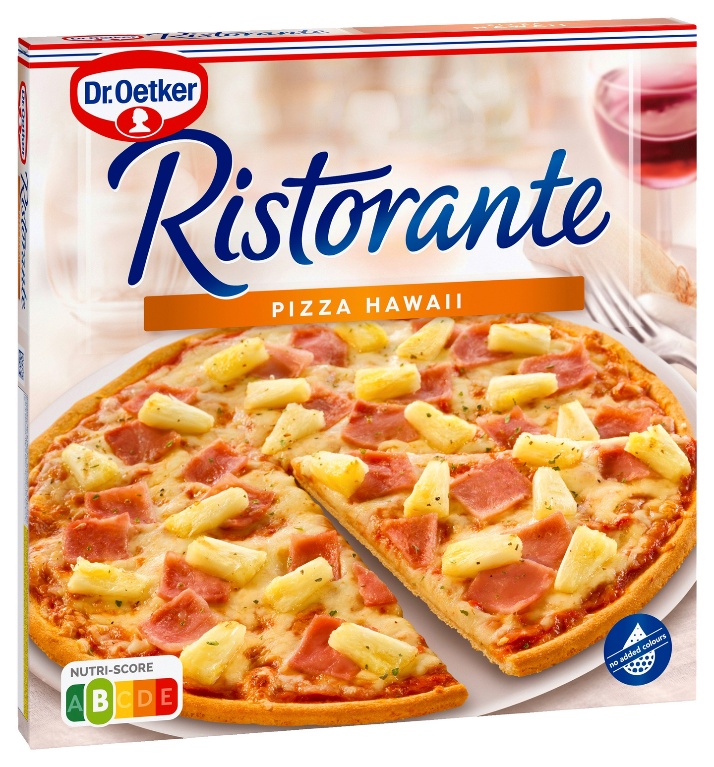 Ristorante Hawaii pizza, jossa on täytteenä reilusti ananaspaloja, kinkkua ja juustoa rapean ohuella pohjalla, pakaste.