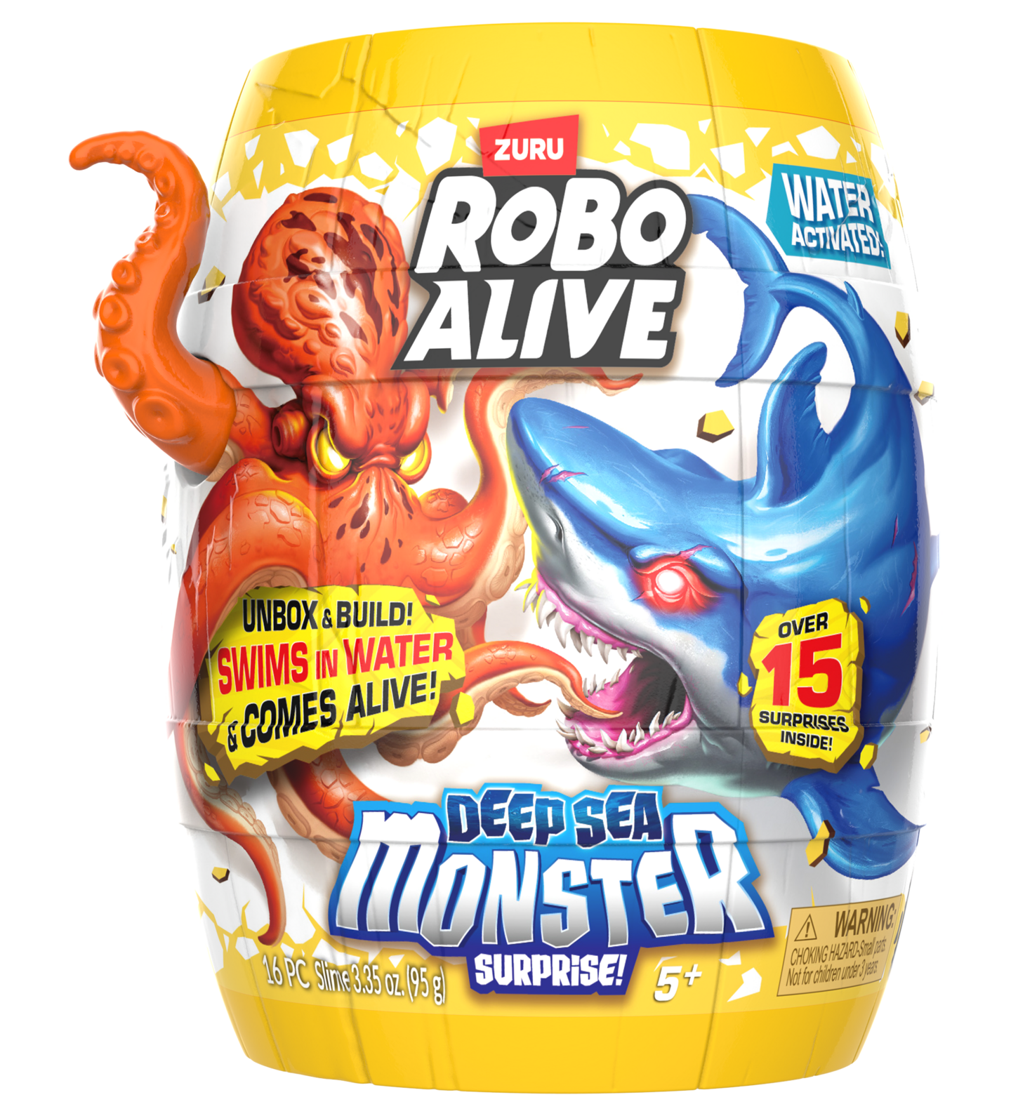Sukella merelliseen hauskanpitoon Robo Alive Deep Sea Monster Surprise -yllätyslelun kanssa! Löydä 15 yllätystä jokaisesta tynnyristä – niissä piileskelee limaa ja vedestä aktivoituva olento. Löydä ja kokoa salamyhkäinen mustekala tai hurja hai ja käy unohtumattomaan vedenalaiseen seikkailuun. Sopii hyvin pienille merentutkijoille!