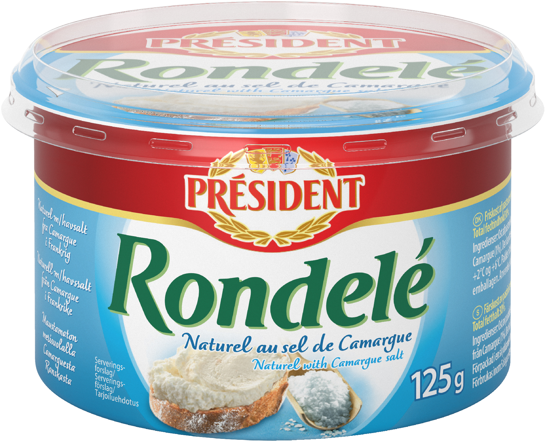 Rondelé on valikoima herkullisia tuorejuustoja, joiden ainesosat ovat peräisin Ranskan alueilta. Tuoretta ja kuohkeaa tuorejuustoa höystettynä Etelä-Ranskan Camarguen suolapeltojen suolalla, täydentää tämän luonnonmukaisen makunautinnon. Sopii hyvin levitteeksi leivän päälle, osaksi juustopöytää, tai kastikkeisiin.
