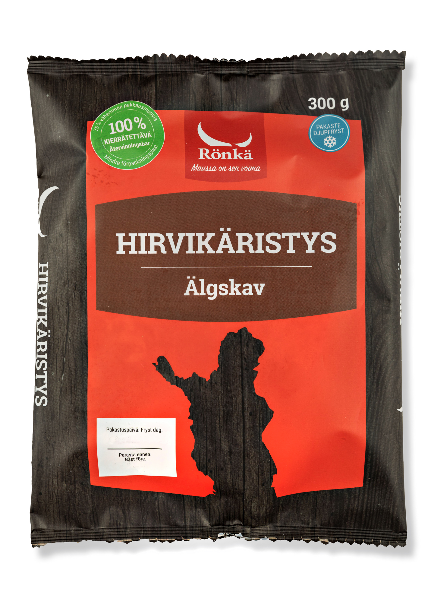 Hirvikäristys on puhdasta hirvenlihaa valmiiksi leikattuna käristyslihana. Upea riistan maku luonnostaan vähärasvaisesta lihasta.