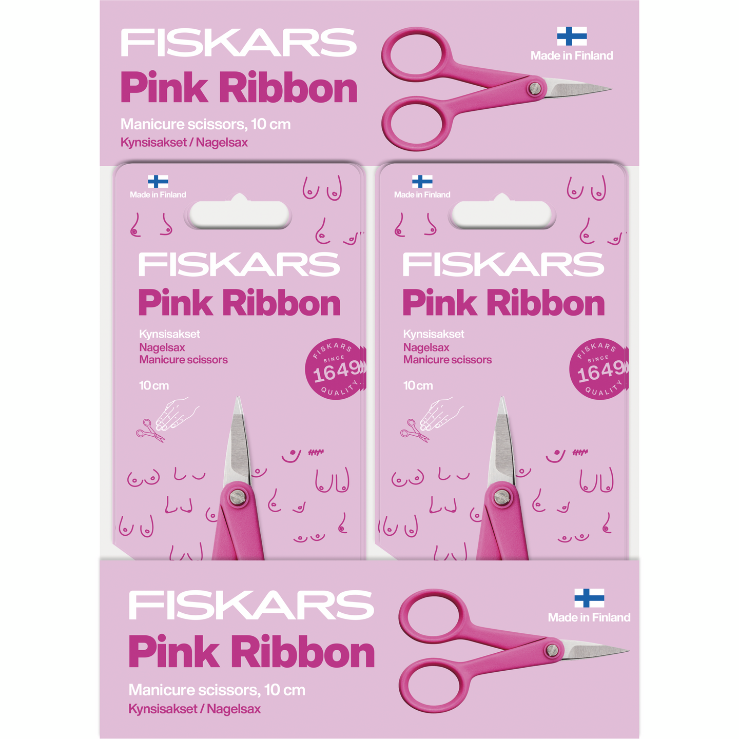 Fiskars Pink Ribbon -kynsisaksissa on ohuet ruostumattomasta teräksestä valmistetut terät, joissa on terävä kärki tarkkaan leikkaamiseen. Ergonomisesti muotoiltu kahva takaa poikkeuksellisen mukavuuden ja hallinnan. Sakset valmistetaan, viimeistellään ja testataan käsin Fiskarsin omalla tehtaalla Suomessa. Sopii sekä oikea- että vasenkätisille. Syöpäsäätiön Roosa nauha -keräyksellä tuetaan syöpätutkimusta sekä syöpään sairastuneita. Fiskars lahjoittaa Roosa nauha -keräykseen 0,6 € jokaisesta kampanjasaksesta. Kuten kaikki Fiskarsin tuotteet, nämä sakset on suunniteltu kestämään. Perustuu 375 vuoden käsityöperinteeseen. Laatua vuodesta 1649.