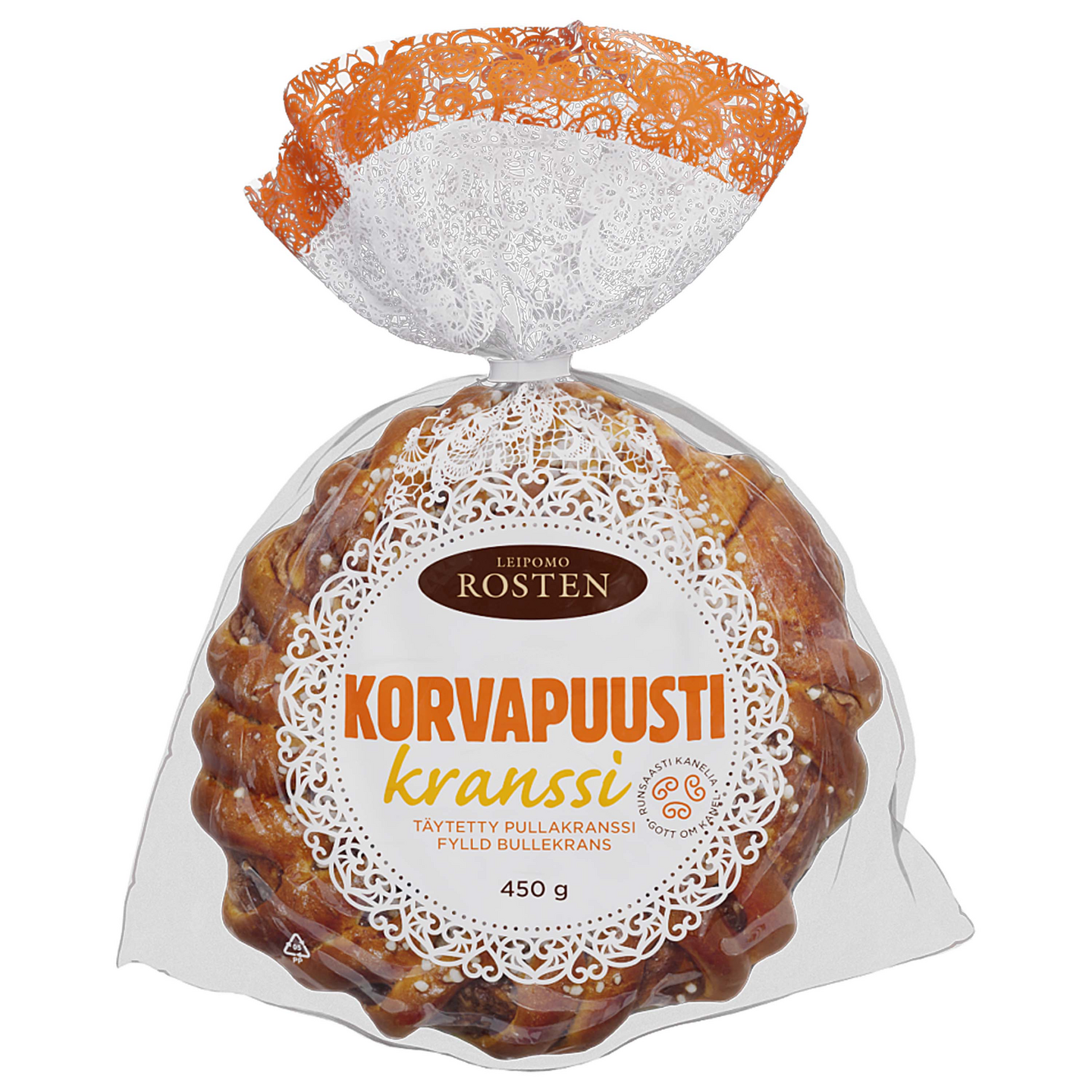 Korvapuustikranssi on runsaalla kanelilla maustettu, mehukkaasti vaniljakreemillä täytetty näyttävä kahvipöydän tarjottava. Kostean mehukas Korvapuustikranssi on jokaisen kahvipöydän suosikki ja maistuu vaativammallekkin herkkusuulle.