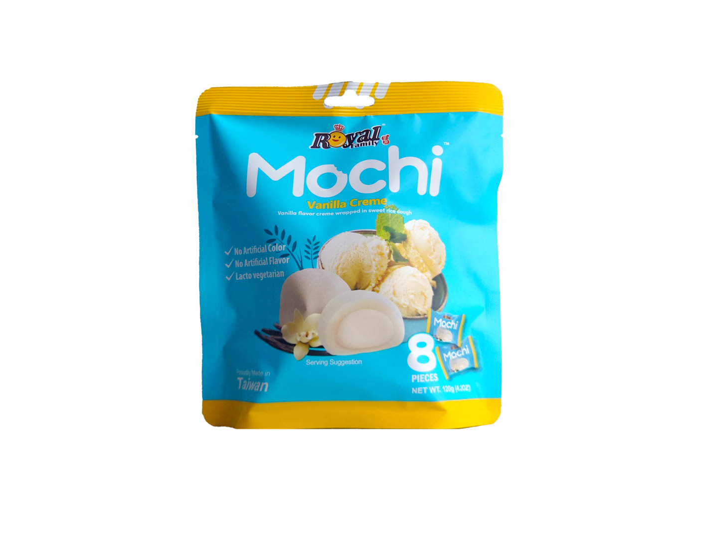 Mochi on herkullinen vähärasvainen makea jälkiruoka. Sen pehmeä rakenne yhdistettynä makoisaan täytteeseen tekee siitä täydellisen herkkupalan kahvipöytään. Pakkaus sisältää 8 kpl yksittäispakattua gluteenitonta mochia.