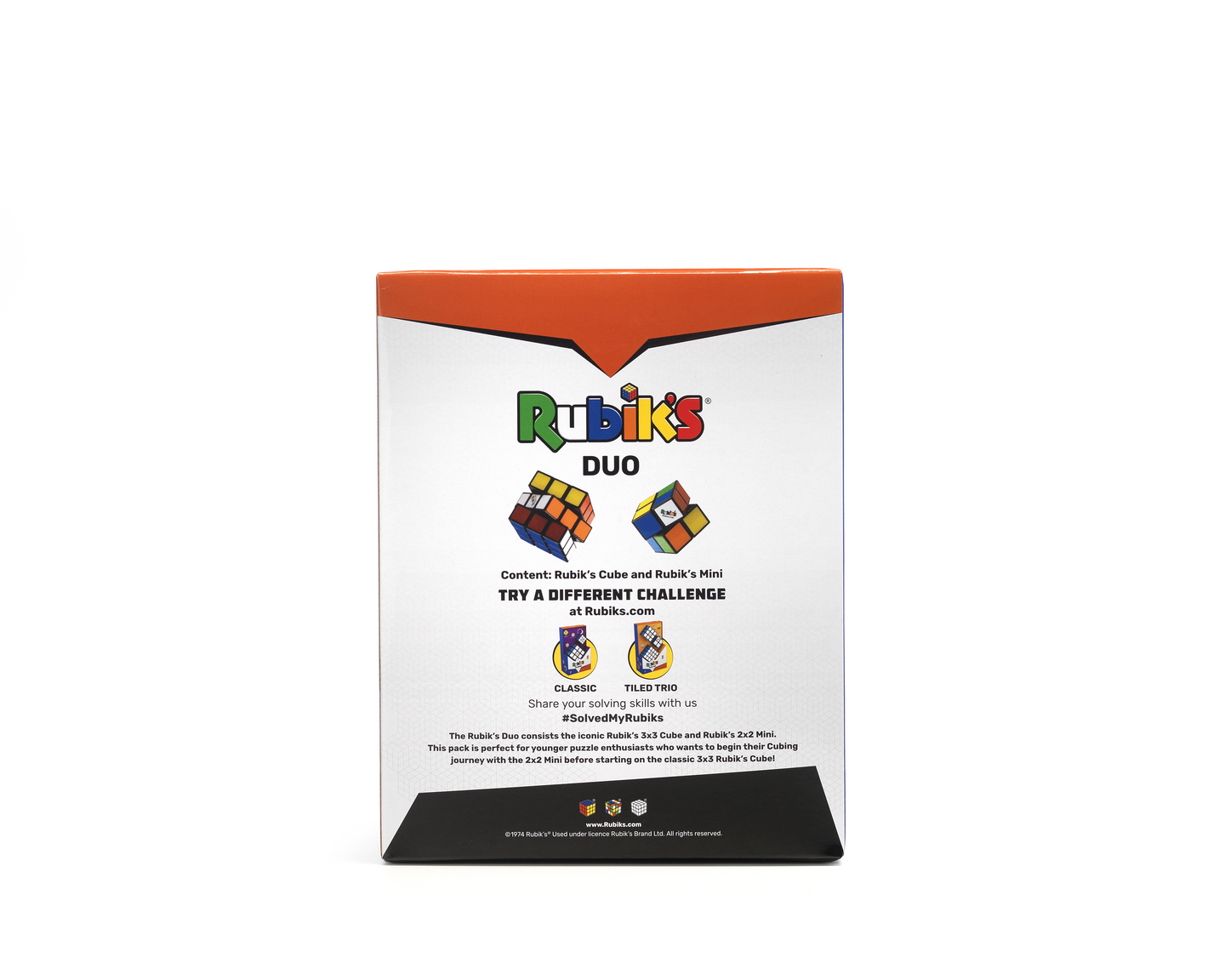 Rubikin Duo on täydellinen pakkaus palapeliharrastajille, jotka haluavat aloittaa Rubikin kuutioiden ratkaisemisen. Pakkaus sisältää 2x2 ja 3x3 kokoiset kuutiot.