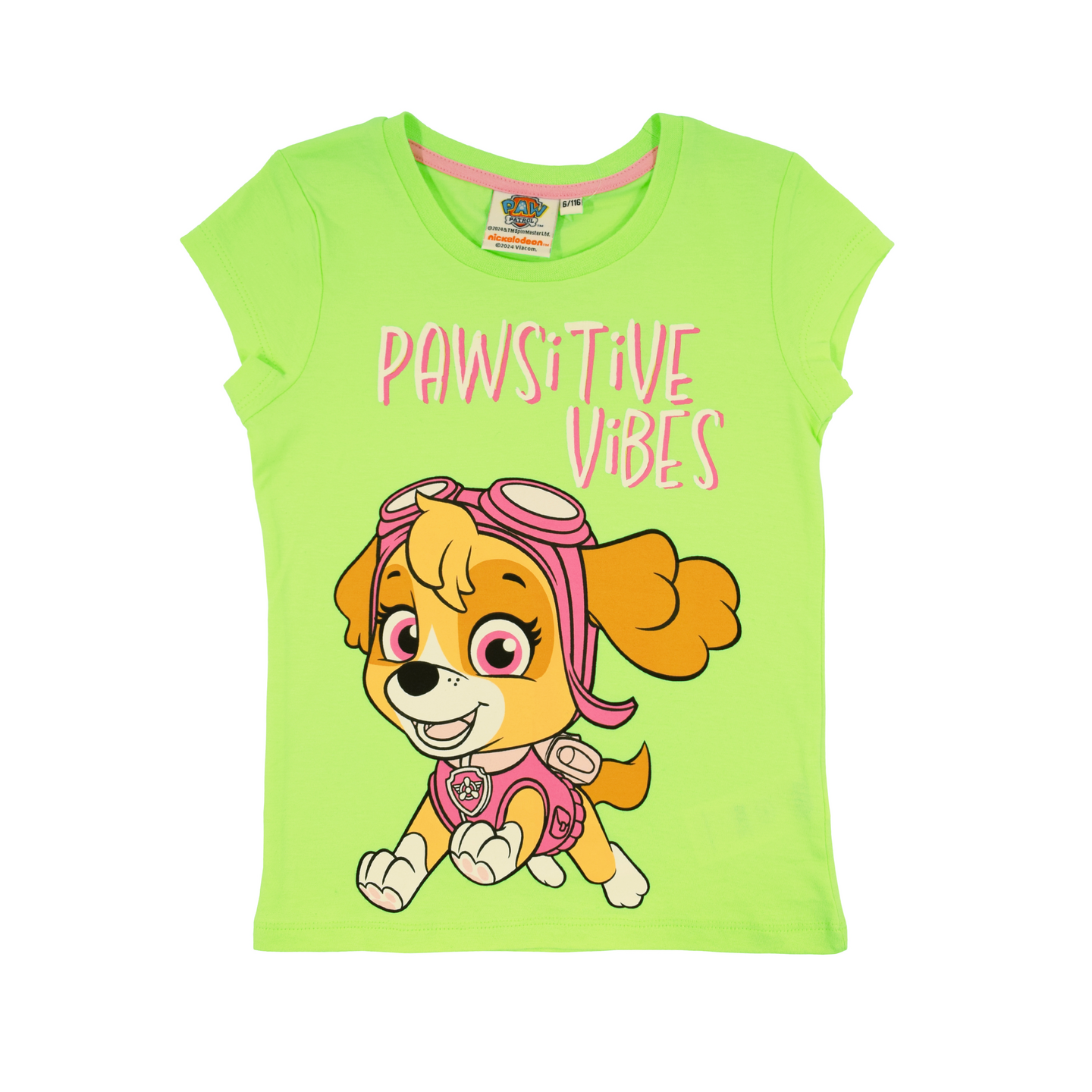 Tervetuloa Ryhmä Hau maailmaan, jossa positiiviset vibat valloittavat! Tämä t-paita on koristeltu painatuksella, jossa on Kaja-koiran kuva ja humoristinen teksti "Pawsitive vibes".