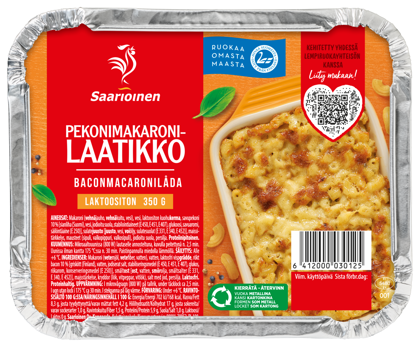Ideoimme pekonimakaronilaatikon yhdessä suomalaisten kanssa. Laitoimme siihen suomalaista savupekonia ja makaronia. Täyteläisyyttä makuun tuovat kerma ja sulatejuusto. Meillä laatikon paistossa ei hätäillä, vaan pehmeän makuiset laatikot kypsyvät hitaasti uunissa paistajan valvovan silmän alla.