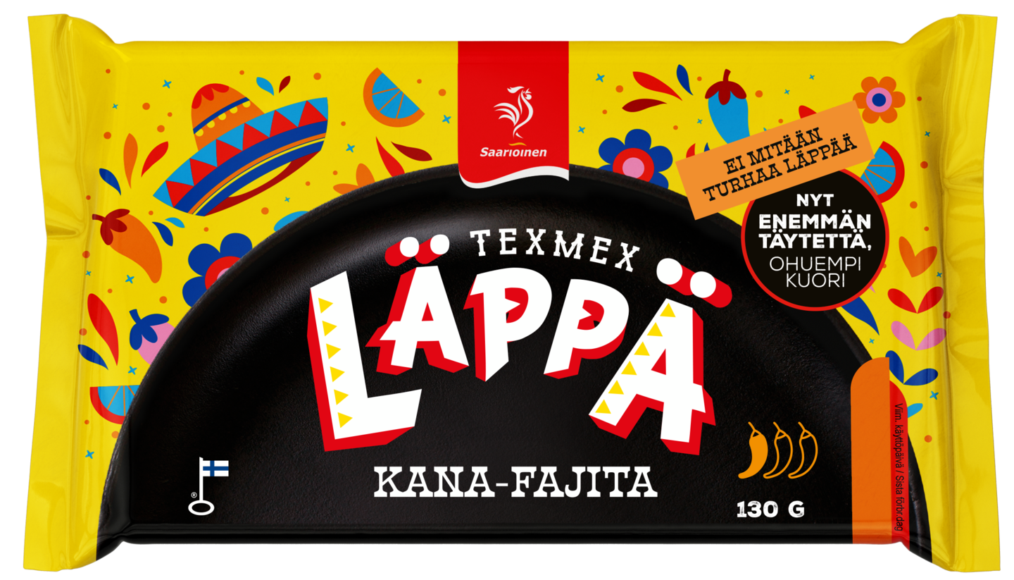 Koska hyvät LÄPÄT maistuvat aina! Tämän Texmex fajitamausteisen kanaläpän täytimme raikkaalla tomaattikastikkeella ja mehevän mausteisella kanatäytteellä, joka sisältää paahdettuja broilerkuutioita, tomaattia, sipulia ja runsaasti aromikasta cheddarjuustoa. Läpän kuoritaikina on tuttua perinteisesti hiivalla kohotettua pizzataikinaa, jonka rikastimme maissijauholla sekä paistoimme pizzauunissa ihanan paahteiseksi. Saarioinen on Suomen luotetuin valmisruokamerkki.