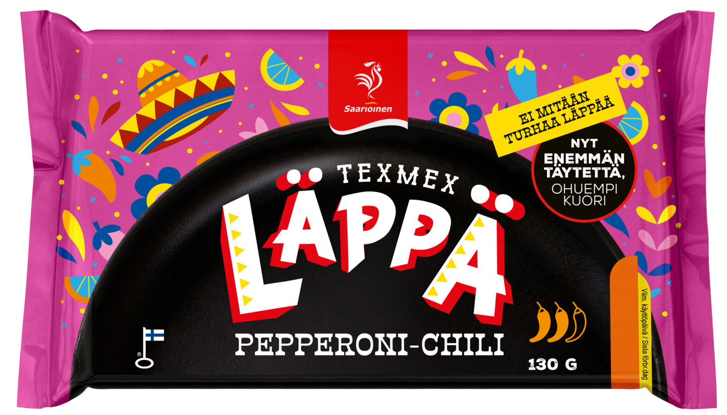 Koska hyvät LÄPÄT maistuvat aina! Tämän Texmex mausteisen pepperoniläpän täytimme raikkaalla chilisellä tomaattikastikkeella ja savuisen mausteisella pepperonitäytteellä, joka sisältää pepperonia, tomaattia, ananasta, jalapenoa, sipulia ja runsaasti aromikasta juustoa. Läpän mausteinen kuoritaikina on tuttua perinteisesti hiivalla kohotettua pizzataikinaa, jonka rikastimme maissijauholla sekä paistoimme pizzauunissa ihanan paahteiseksi. Saarioinen on Suomen luotetuin valmisruokamerkki.