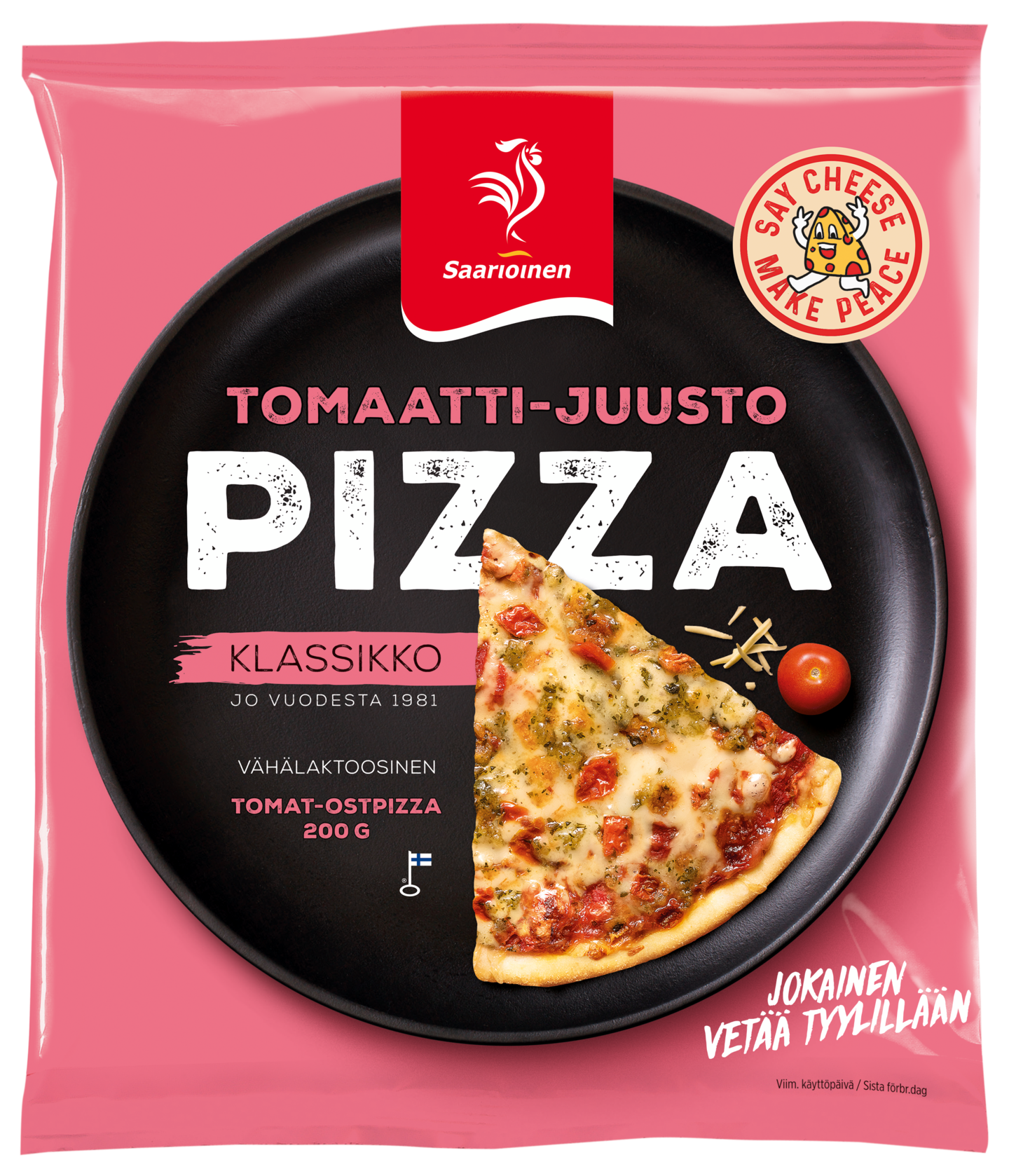 Tämän juustoisen klassikkopizzan täytimme maukkaalla mozzarella- ja edamjuustolla, täyteläisellä tomaattikastikeella ja herkullisella pestolla. Tässä klassikossa pizzataikina on perinteisesti hiivalla kohotettu ja ihanan rapeaksi pizzauunissa paistettu. Näitä rakastettuja legendaarisia klassikkopizzoja olemme paistaneet jo vuodesta 1981. Saarioinen on Suomen luotetuin valmisruokamerkki.