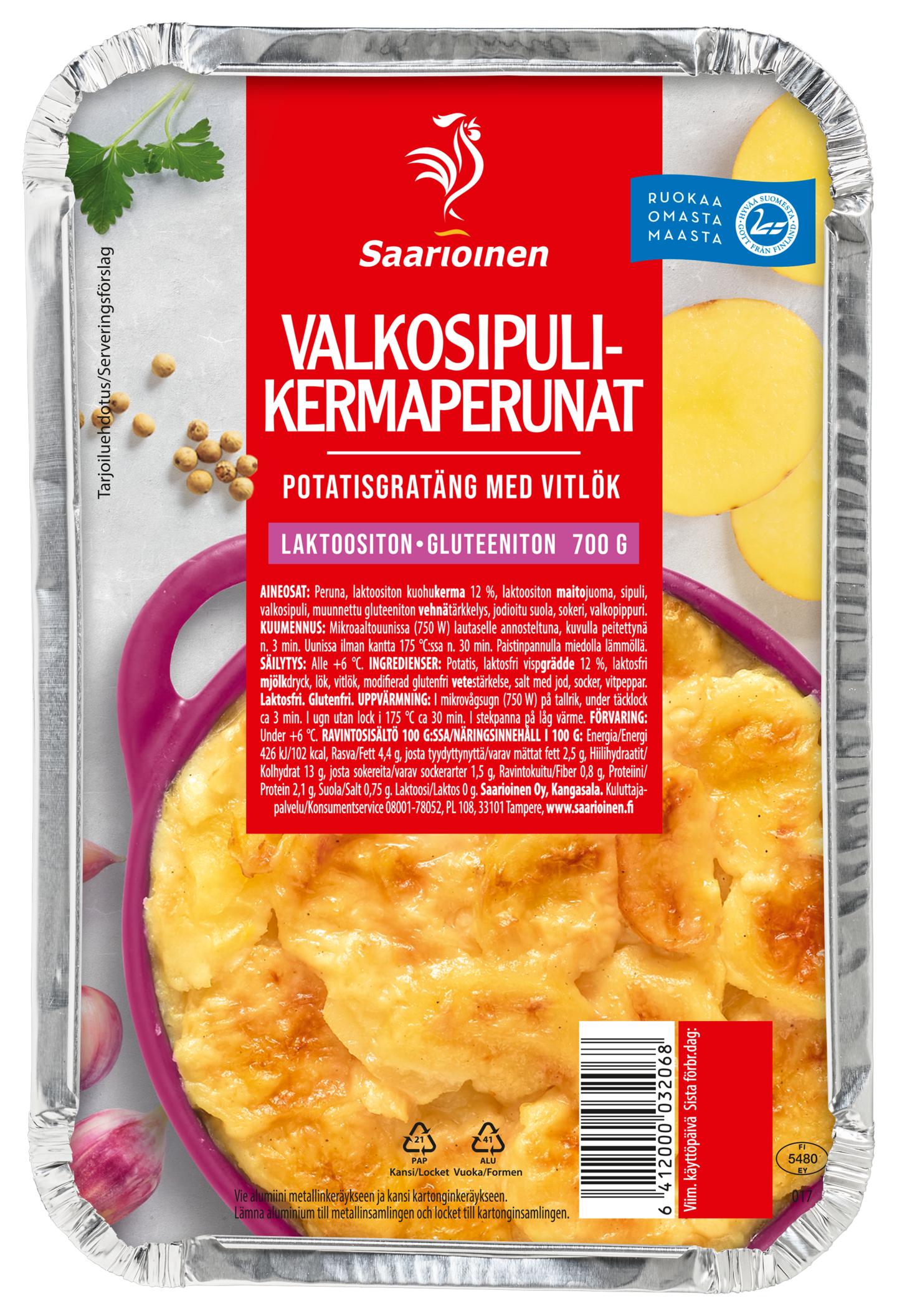 Paistoimme kuumassa uunissa tuoreista perunoista, valkosipulista ja kermaisesta kastikkeesta täyteläisen ja maukkaan perunalisäkkeen. Nämä kermaperunat sulavat suussa ja ne voi vaivatta lämmittää vuoassa uunissa tai vaikkapa grillissä. Saarioinen on Suomen luotetuin valmisruokamerkki.