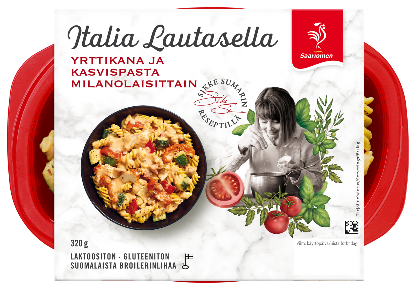 Italia Lautasella. Monta herkullista annosta, monta tarinaa Italiasta kokki ja ravintoloitsija Sikke Sumarin resepteillä. Valmistimme italialaisittain yrteillä ja aurinkokuivatulla tomaatilla maustettua kermaista kanakastiketta, jonka tarjoamme gluteenittoman pastan ja grillattujen kasvisten kanssa. Buon appetito! Saarioinen on Suomen luotetuin valmisruokamerkki.