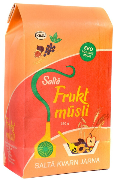 Saltå Kvarns Fruktmüsli är en smakrik müsli med extra mycket frukt. Müslin innehåller fullkornsflingor av korn, havre, vete och råg. Både grodd och kli finns kvar vilket ger ett högt fiberinnehåll. Den söta smaken kommer från russin, aprikoser, fikon, dadlar och äpple.