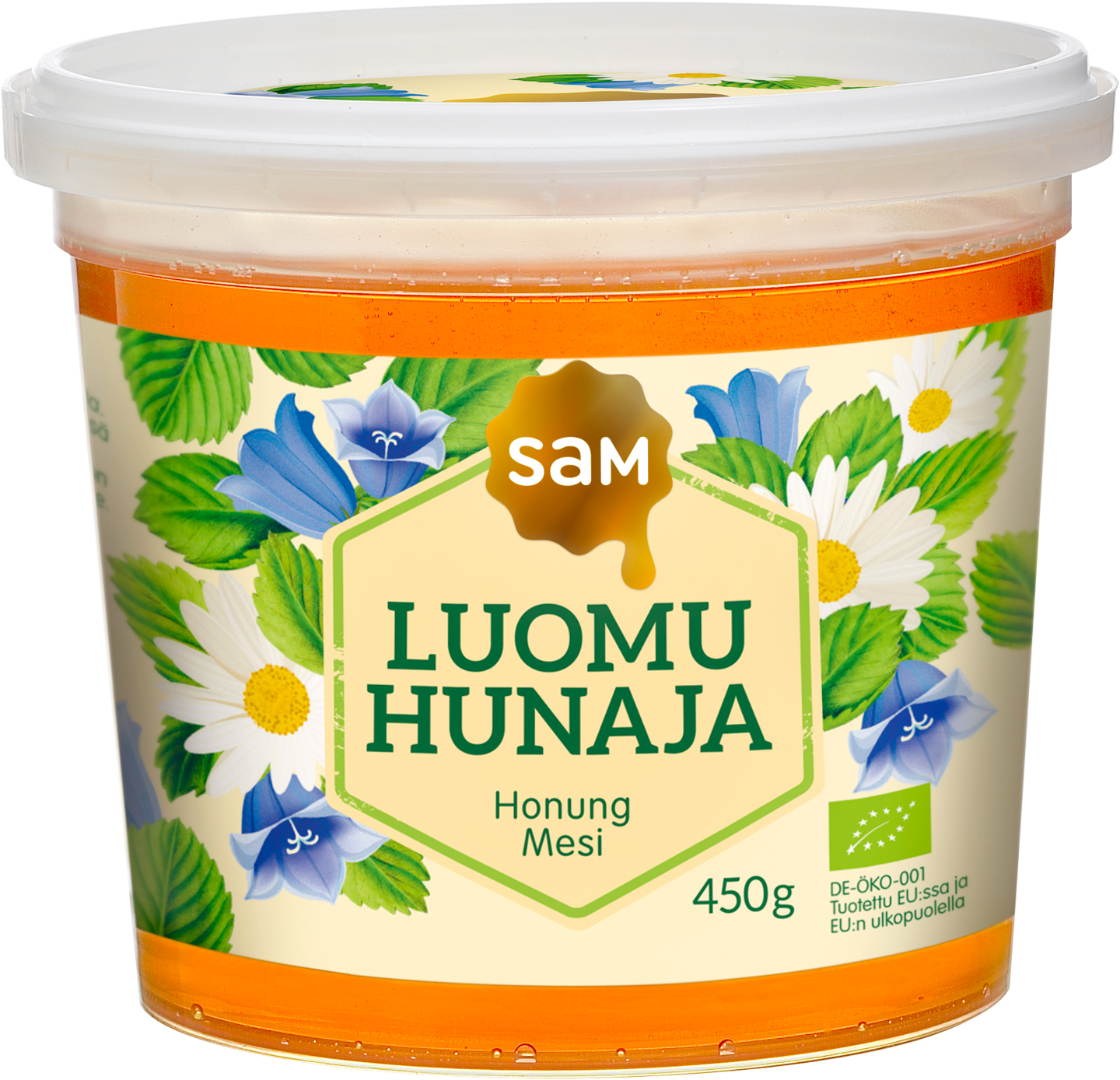 Hunajainen SAM Luomuhunaja on mehiläisen villikukkien ja luomukasvien medestä valmistama puhdas hunaja Euroopasta sekä Etelä- ja Keski-Amerikasta. Keskivaalea, pehmeän kiteinen hunaja, joka on maultaan hedelmäinen, pyöreä ja hennon toffeinen. Hunajainen SAM Oy on suomalainen toisen sukupolven perheyritys ja intohimomme on aito ja puhdas hunaja. Meille hunaja on aina ollut maailman hienoin ja herkullisin luonnontuote ja olemme halunneet tuoda sen suomalaisille juuri sellaisena kuin se luonnossa on.