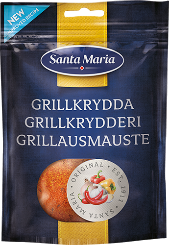 Grilllausmauste on klassinen mauste, jossa on tasapainoinen yhdistelmä valkosipulia, paprikaa ja yrttejä. Grillausmauste sopii hampurilaisille, perunamuusille ja ranskalaisille perunoille. Santa Maria Grillausmauste sopii myös ympäri vuoden mausteeksi naposteltaviin, kastikkeisiin ja marinadeihin. Käytä Grillausmaustetta pöytämausteena tai takuuvarmana mausteseoksena, kun valmistat ruokaa lieden ja grillin ääressä. • Säilytä kuivassa ja pimeässä aromin säilyttämiseksi pidempään
