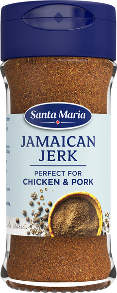 Jamaican Jerk on ihanan aromikas mausteseos, jossa on selkeitä maustepippurin vivahteita. Jerk on täydellinen mauste kanalle ja porsaanlihalle, mieluiten grillattuna tai uunissa paahdettuna. Jerk on myös erinomainen mauste tulisille muhennoksille ja riisiruoille kalalla tai pavuilla. Santa Maria Jamaican Jerkiä voidaan käyttää rub-mausteena, eli kuivana marinadina, joka hierotaan lihaan ennen grillaamista. • Säilytä kuivassa ja pimeässä aromin säilyttämiseksi pidempään
