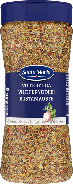 Riistamauste on maustesekoitus, joka on kehitetty erityisesti riistaruokiin. Riistamauste sopii erinomaisesti maustamaan niin kastikkeet kuin marinaditkin. Täydellistä riistaresepteihin ja esim. poron, hirven, peuran tai villisian lihalle. Riistamausteessa on upea sekoitus suolaa, mustapippuria, sipulia, katajanmarjaa, korianteria, rosmariinia, salviaa, punaista paprikaa, laakerinlehteä, timjamia ja valkosipulia. - Riistamauste säilytetään mieluiten pimeässä ja viileässä aromin säilyttämiseksi pidempään.