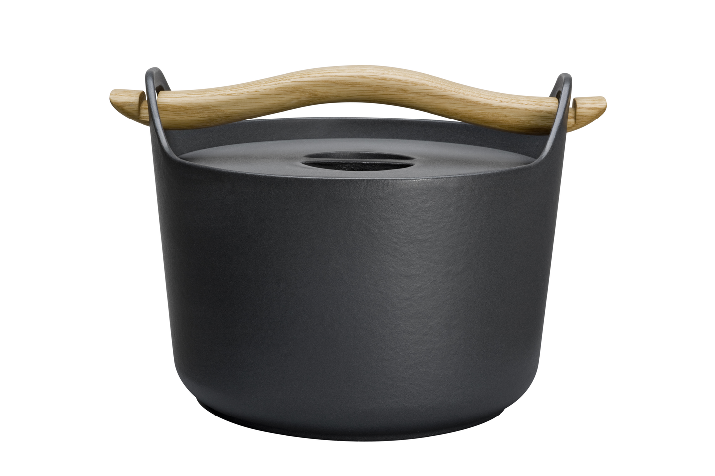 Iittala Sarpaneva-pata puukahvalla (3,0L) on muotoiluklassikko. Pata on emaloitu sisäpuolelta ja se kypsentää ruoan tasaisesti ja ruskistustulos on hyvä. Siihen ei myöskään tartu makuja ruoka-aineista, joten samaa pataa voi käyttää niin lihan kuin kalan valmistamiseen. Padassa on irrotettava puinen kahva. Vain käsipesu. Kaikille liesityypeille, myös uuniin ilman puukahvaa.
