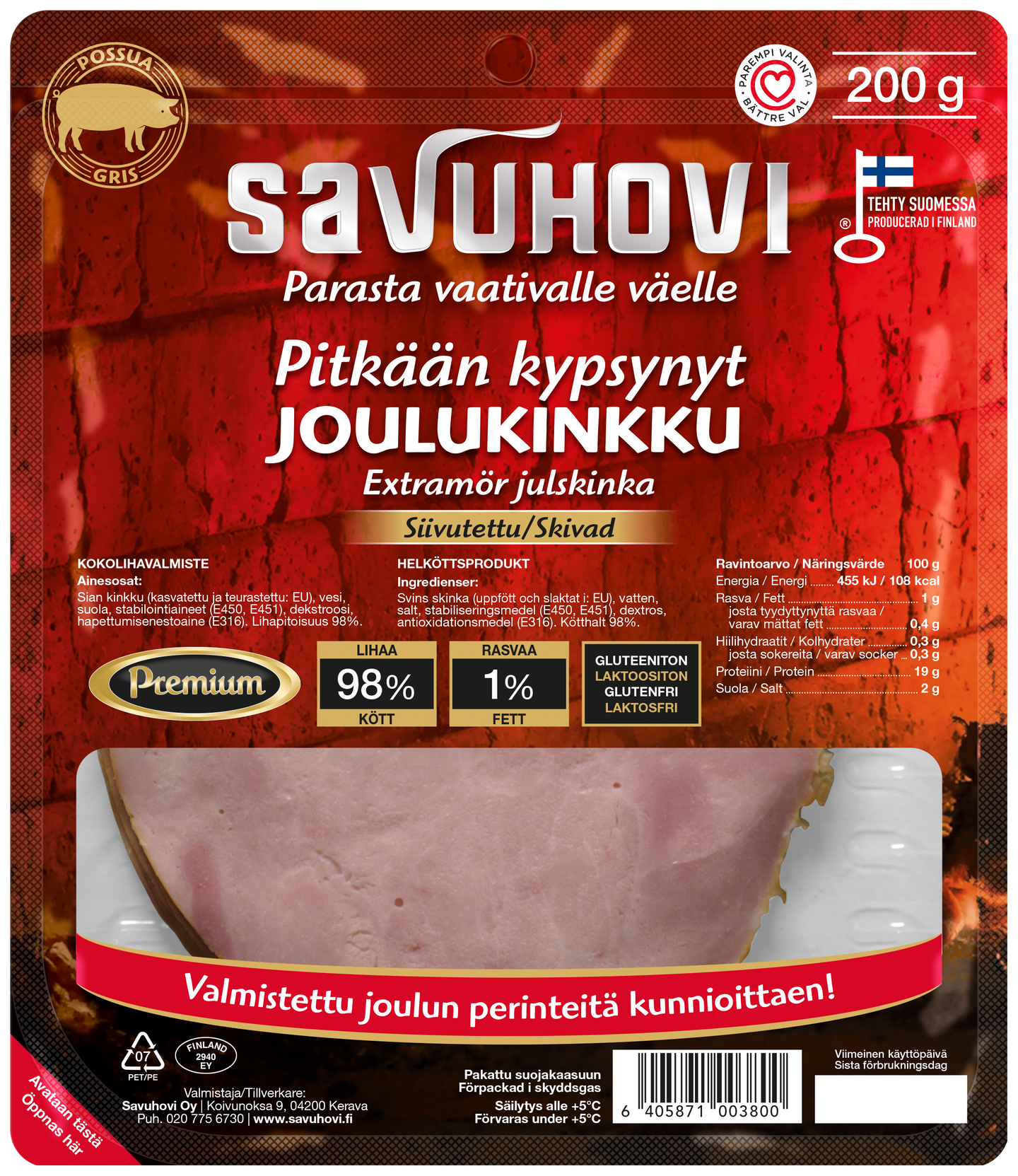 Savuhovi pitkään kypsynyt joulukinkku 200g siivutettu